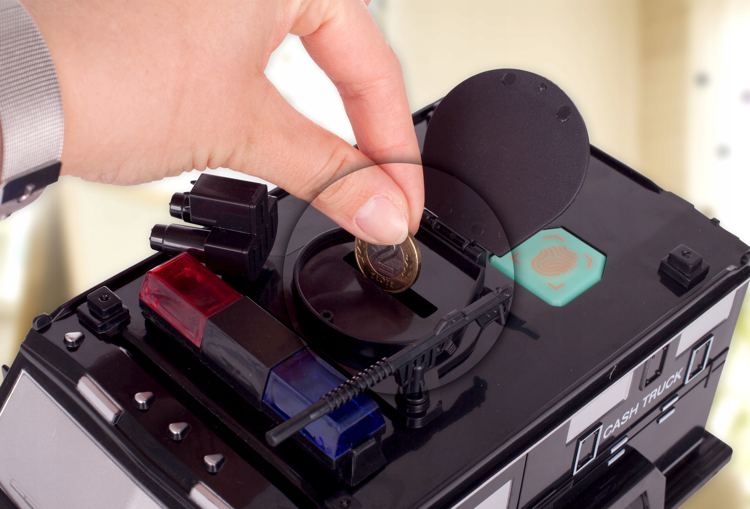 В него можно положить монеты и купюры разных размеров. Пусть ваши сбережения будут в безопасности в этом удивительном автомобиле.