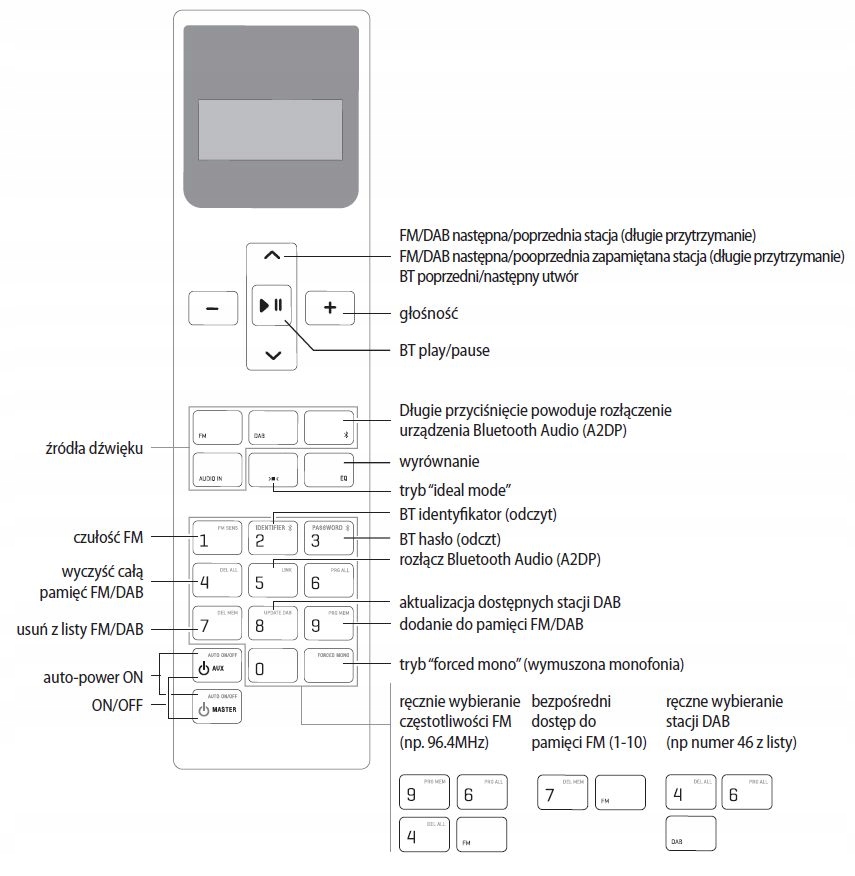 Рация имеет функцию ВКЛЮЧЕНИЕ, благодаря которой после подключения к осветительной установке она будет автоматически включаться при нажатии выключателя и выключать прибор при его включении. выключенный. Функция IDEAL позволяет выбрать источник звука (FM/Bluetooth), который должен включаться автоматически, и запомнить предпочтительные настройки громкости, баланса, уровней низких и высоких частот и т. д.