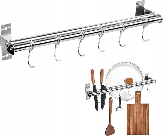 KÜCHE ПЛАНКА З ГАЧКАМИ 40 СМ САМОКЛЕЮЧА З 6 ГАЧКАМИ З НЕРЖАВІЮЧОЇ СТАЛІ