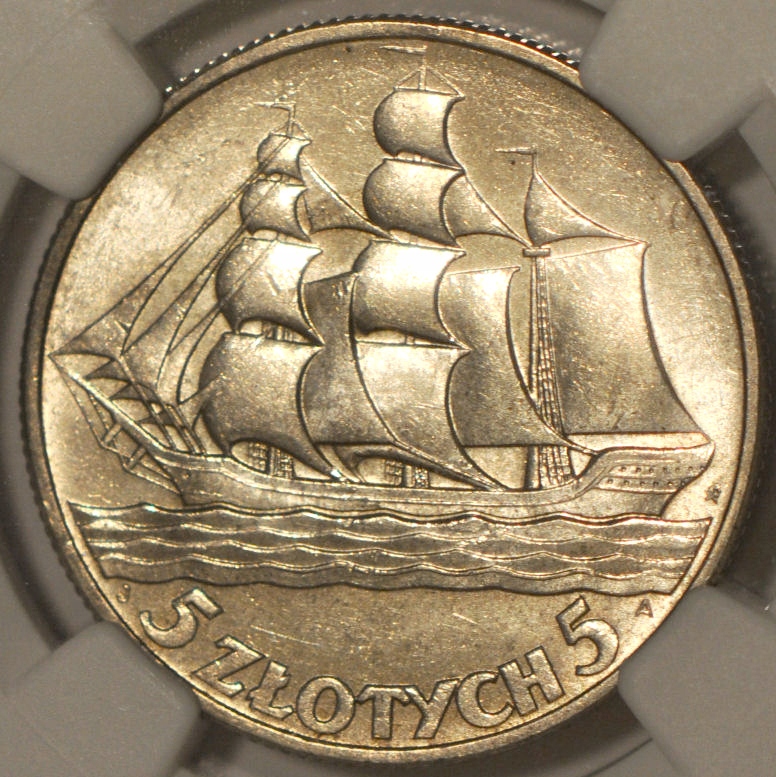 kd 5 злотих 1936 Вітрильник - NGC MS61 - крас