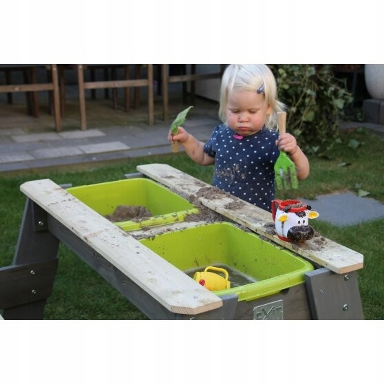 ВЫХОД Стол для песка, воды и пикника «Аксент» многофункциональный Стол для песка, воды и пикника имеет два зеленых лотка, которые можно наполнять, например, водой или песком, а также можно хранить игрушки. Зеленые туалетные лотки снимаются, поэтому их легко чистить.