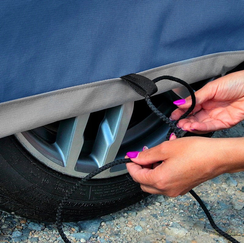 - Закрывает весь автомобиль, слегка перекрывая нижнюю часть