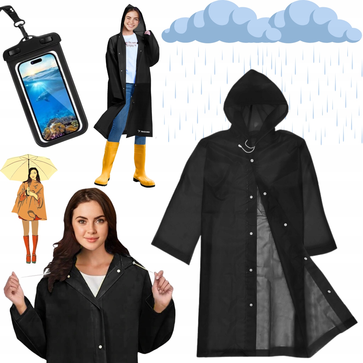 Представляем вам идеальное решение для дождливых дней - элегантное и функциональный черный дождевик, доступен в универсальном размере