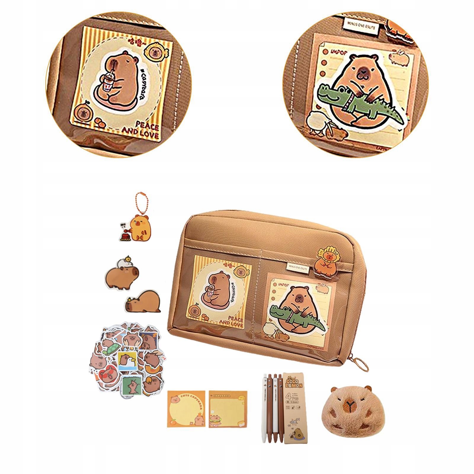 [Упаковочный контент]: корпус карандаша содержит очаровательную куклу Капибара, клип, наклейки, заметки, кольцо с ключом, значки, которые добавляют игры и визуализации.