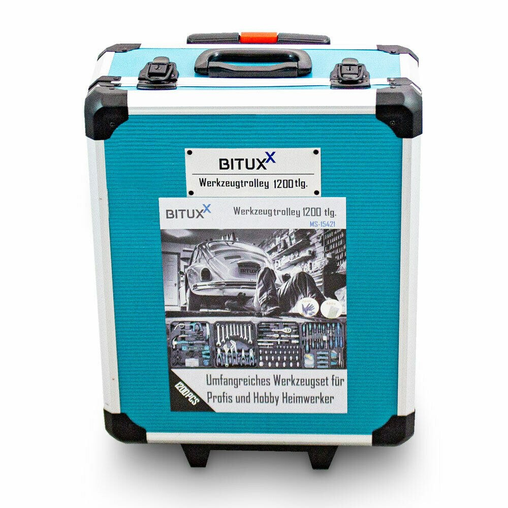 Набор из 1200 предметов отвечает ожиданиям как с точки зрения качества, самых высоких стандартов, так и с точки зрения функциональности. Эти инструменты изготовлены из высококачественной хромованадиевой стали и поэтому особенно долговечны. Все было идеально подобрано и собрано для удовлетворения потребностей любого домашнего хозяйства, домашних или гаражных работ. Инструменты расположены и организованы в четырех лотках для инструментов, расположение четкое и облегчает работу. Устойчивый кейс с ручкой и колесами можно легко и безопасно транспортировать на рабочее место.