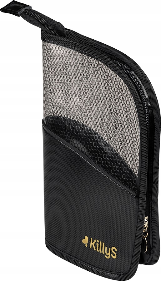 Косметичка KillyS для кистей. Идеально подходит как контейнер для кистей и органайзер для косметики в одном. Он имеет традиционную форму пенала, который при расстегивании значительно увеличивает его размер и позволяет хранить кисти стоя в ванной или на туалетном столике. Он изготовлен из чрезвычайно прочной сетки и синтетического ПВХ, а также черного жесткого материала, водонепроницаемого и очень легко чистящегося. При размещении на прямой поверхности устойчиво стоит как без щеток внутри, так и с ними. В футляре KillyS поместится любой набор кистей для макияжа, а специальные отделения позволят хранить 6 кистей в одном месте. Косметичка KillyS идеальна как для домашнего использования, так и для работы профессионального визажиста.