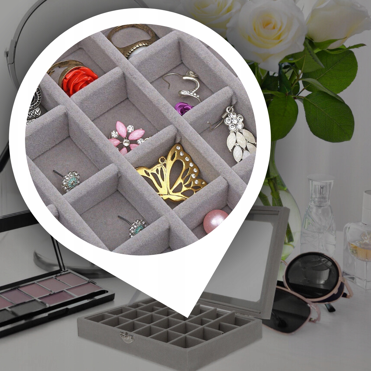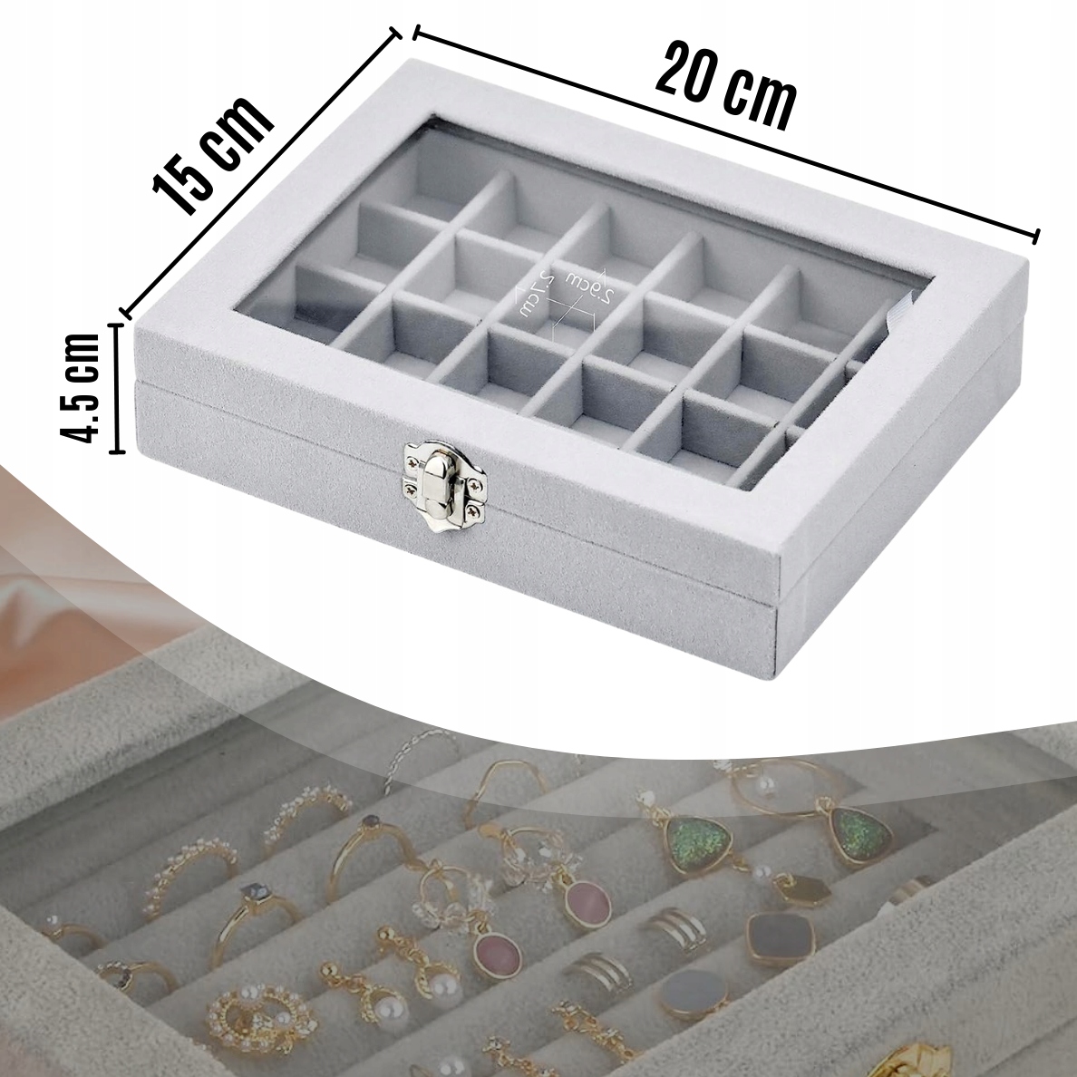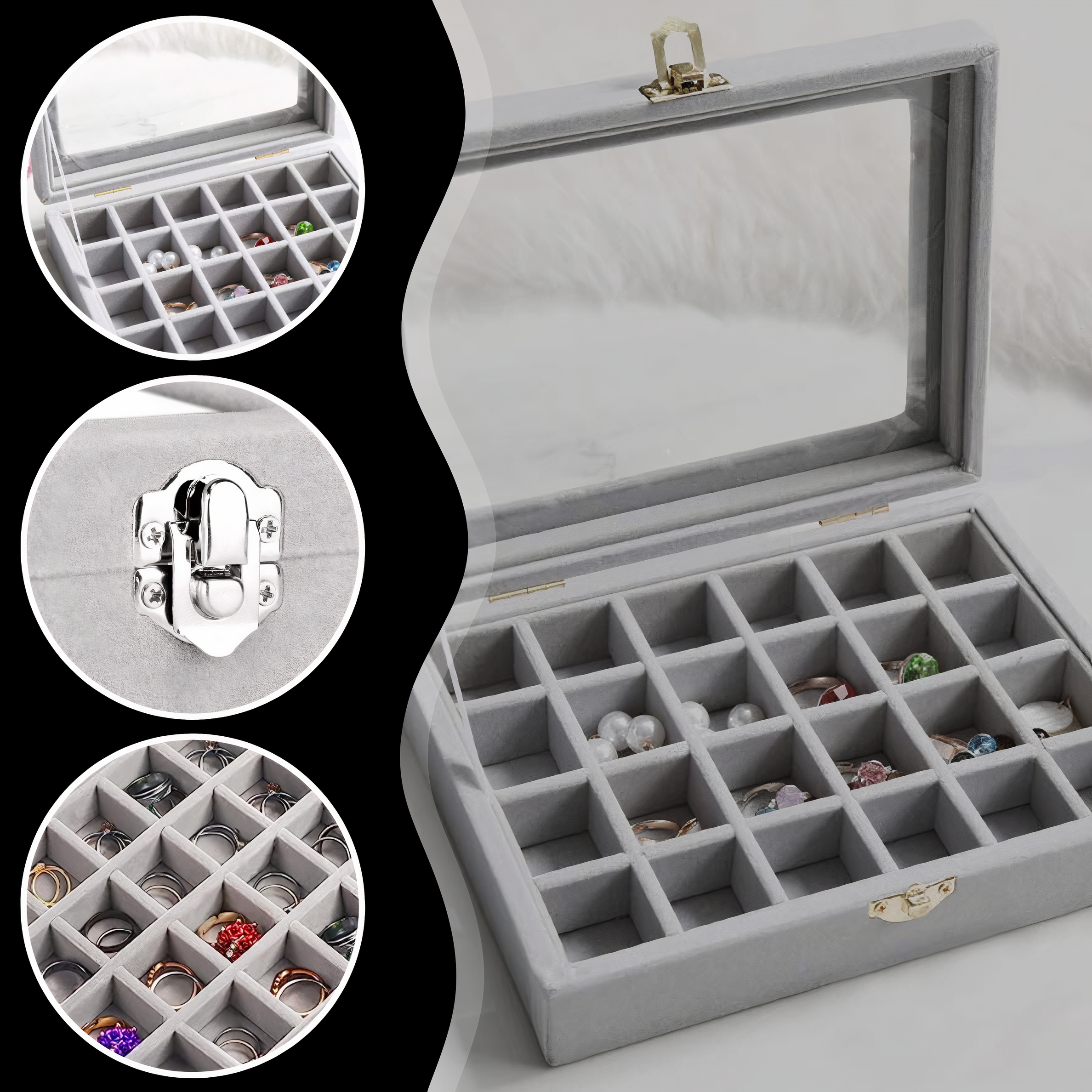Он имеет до 24 отделений, в которых можно хранить кольца и серьги. . Благодаря этому в украшениях легко поддерживать порядок и порядок.