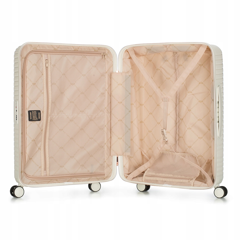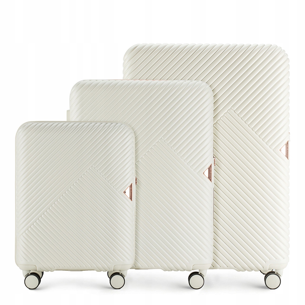 Стильный набор чемоданов WITTCHEN 56-3P-84S-88 от GL Style коллекция белого цвета, изготовлена из поликарбоната с матовым покрытием. Легкость и высокая прочность чемоданов обеспечивают надежную защиту перевозимых вещей и комфорт перемещения с багажом. Небольшой чемодан соответствует требованиям к ручной клади большинства бюджетных авиакомпаний (Easy Jet, LOT, Lufthansa, Wizz Air). Каждый чемодан оснащен четырьмя двойными колесами из АБС-пластика с гибким покрытием, телескопической ручкой и резиновыми, гибкими ручками (в случае маленького чемодана – только верхней ручкой). Средние и большие чемоданы имеют четыре боковые ножки для удобного позиционирования. Дополнительным преимуществом является безопасность в виде замка TSA. Благодаря этому при таможенном досмотре багажа мы можем гарантировать бесконтактное открытие чемодана и его повторное закрытие, не повреждая замок. Чемоданы имеют основное отделение, закрывающееся на молнию с регулируемыми ремнями для защиты багажа от перемещения, второе отделение, закрывающееся на молнию, и 3 кармана, в том числе 2 на сетке, все закрываются на молнию.