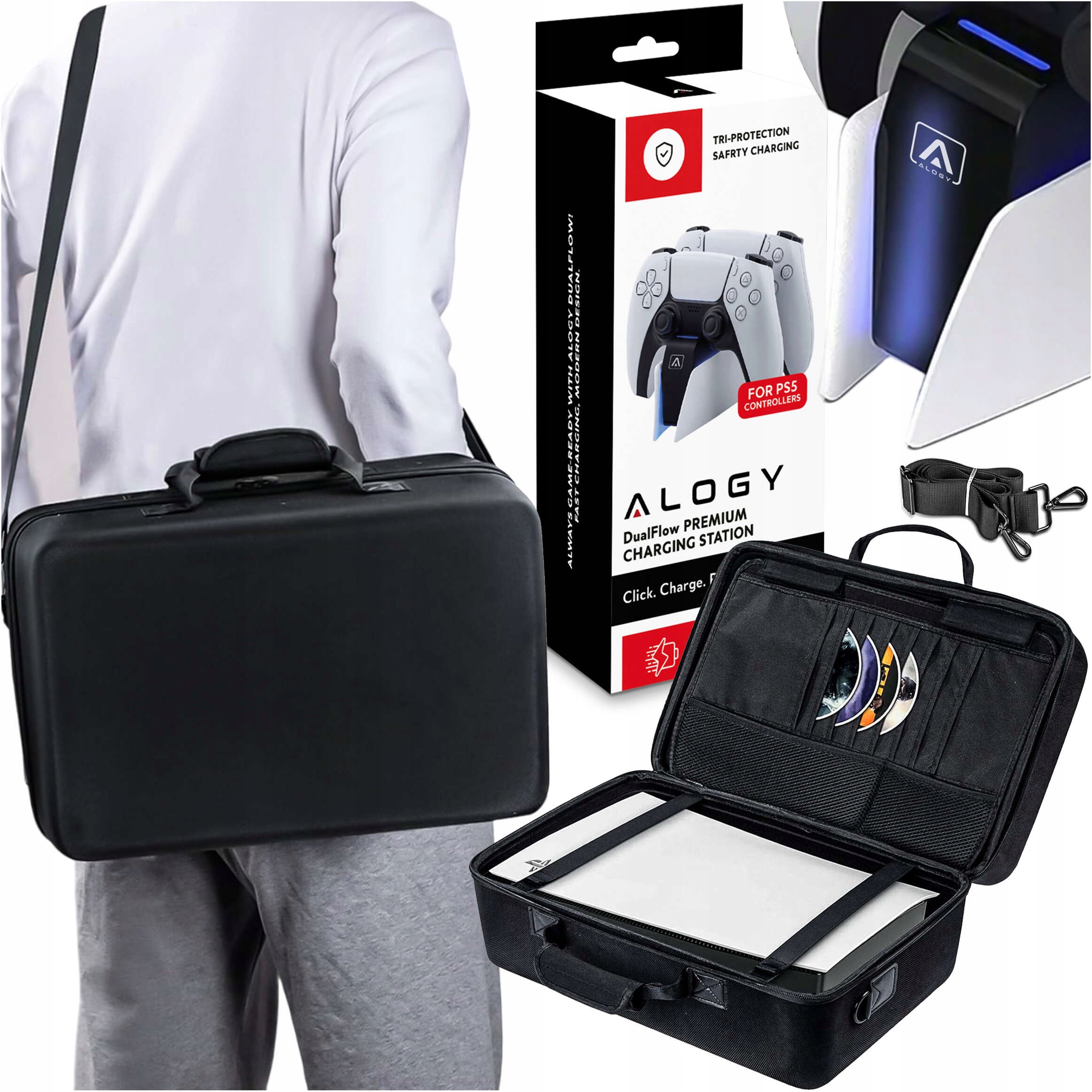 ▶️ Чехол, чемодан, сумка для консоли Playstation 5 PS5, чехол + док-станция Alogy Dual Charging Black White