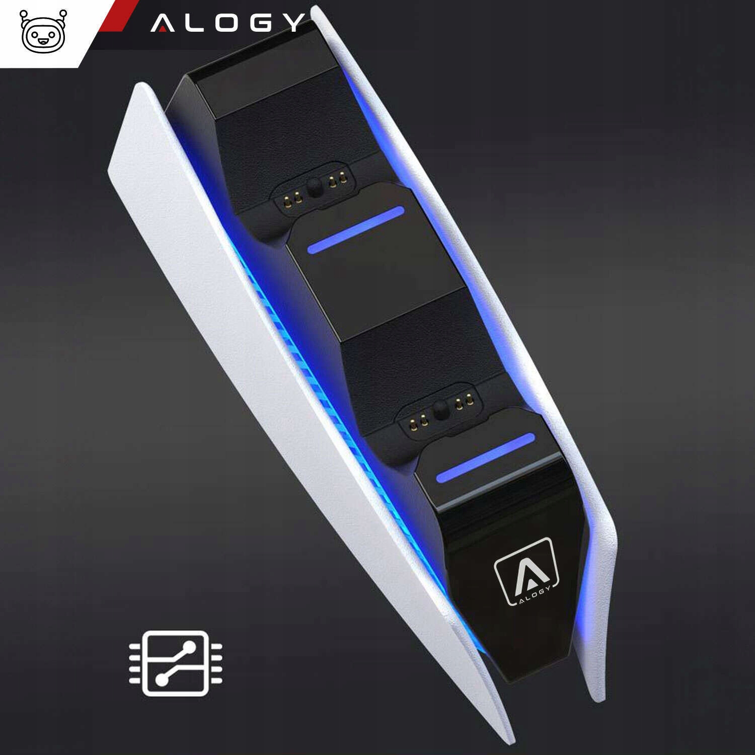 ⭐ Зарядная станция имеет светодиодную подсветку и два диода, расположенные перед зарядными гнездами, которые информируют о состоянии зарядки контроллеров. Синий цвет указывает на то, что устройство полностью заряжено, а красный цвет указывает на то, что оно заряжается.