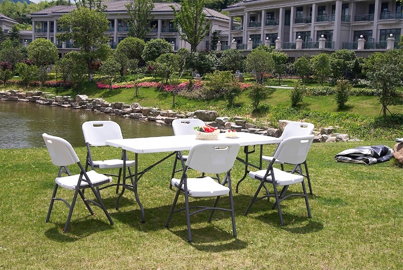 После раскладывания стол готов к использованию, он не требует предварительной сборки или дополнительных инструментов. Ножки стола складываются под столешницу. За столом одновременно могут сидеть 8 человек.