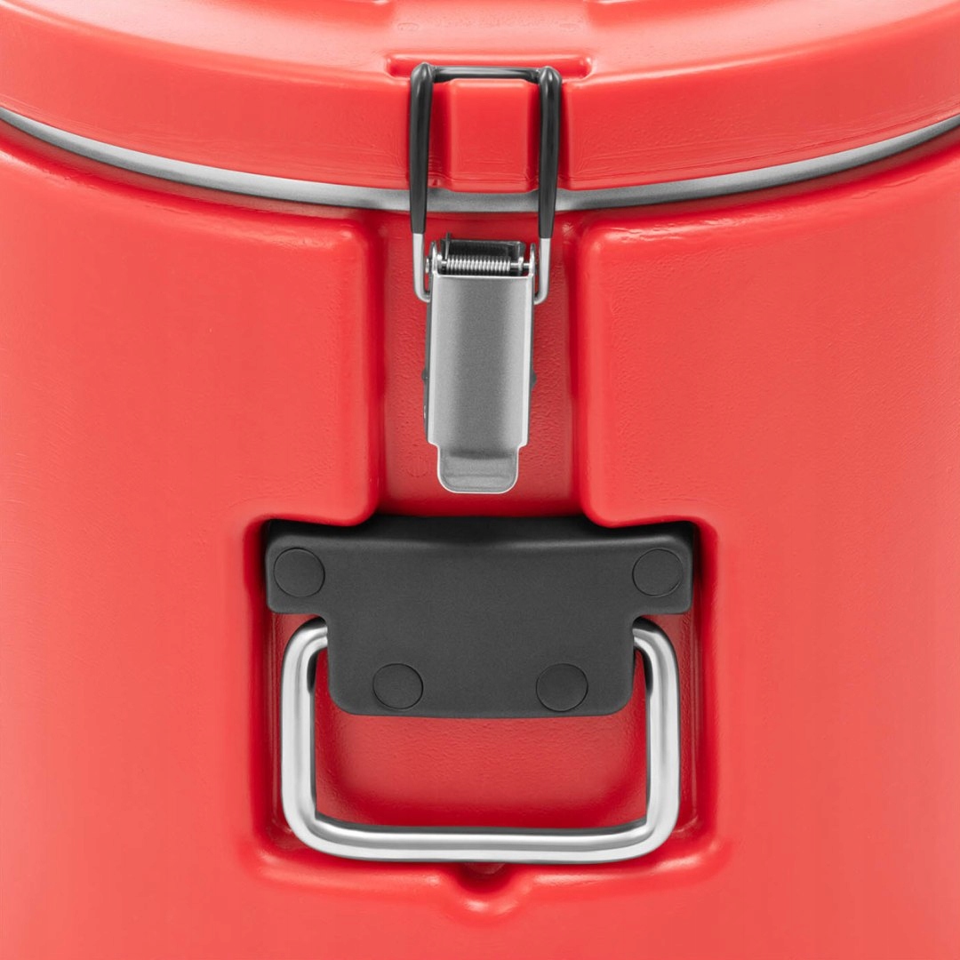 Гастрономический термос Royal Catering создан для удобной транспортировки горячих и холодных блюд и напитков. Идеально подходит для ресторанов, отелей, столовых и предприятий общественного питания. Термос имеет емкость 15 л и размеры: 335 х 300 мм. Внутренняя часть выполнена из термостойкой и легко чистящейся нержавеющей стали, а корпус – из прочного пластика. Двойная изоляция позволяет поддерживать температуру посуды, которая варьируется прим. 1-2 градуса Цельсия/час. Термос закрывается на кнопки и имеет ударопрочное дно. Ручки и кран облегчают переноску и наливание напитков. Термос очень гигиеничен, устойчив к загрязнениям и нейтрален при контакте с пищевыми продуктами.