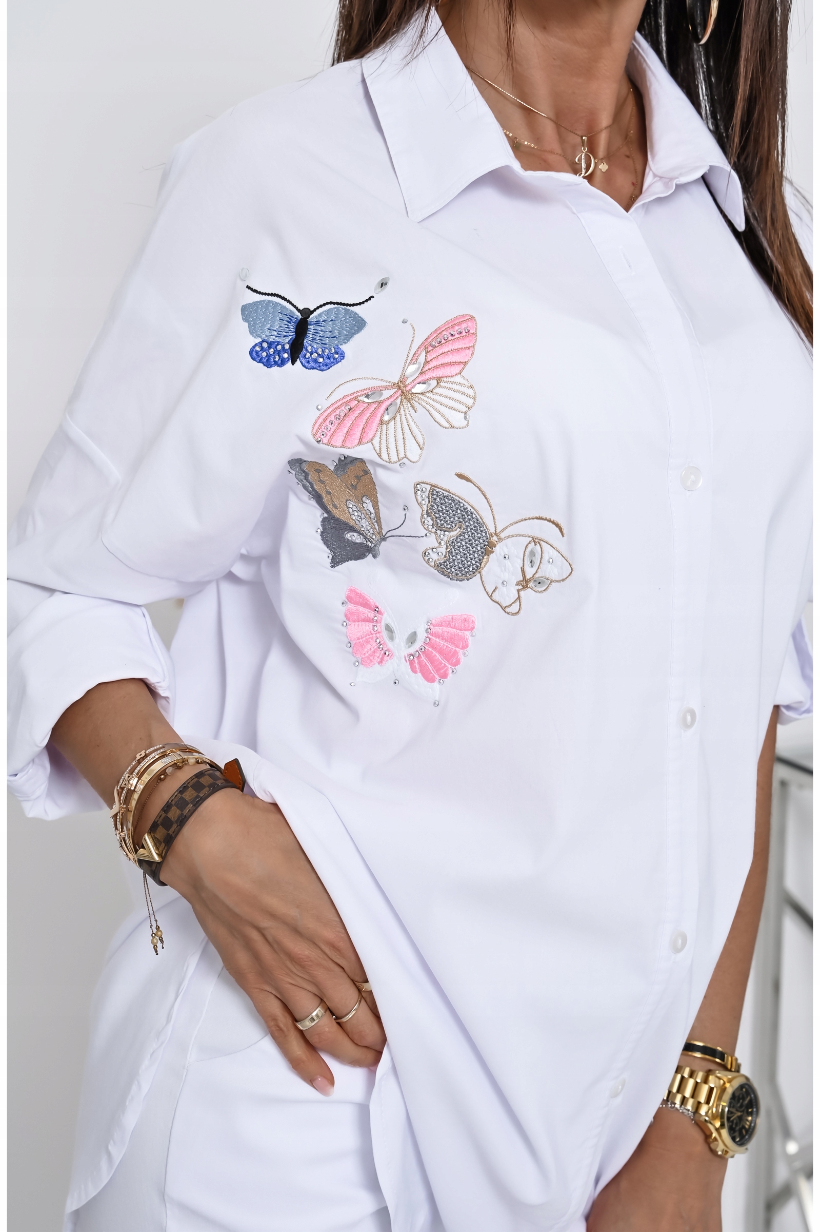 Вышитая аппликация с бабочками спереди