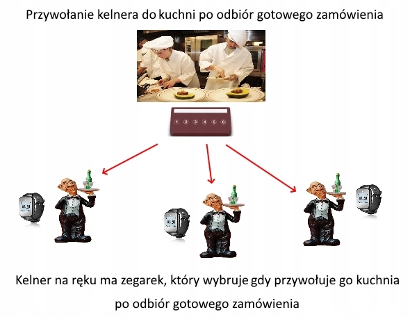 Мы представляем вам набор официанта, вспоминающего кухню. Вызов (передатчик) и официант смотрит.