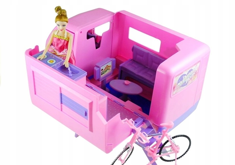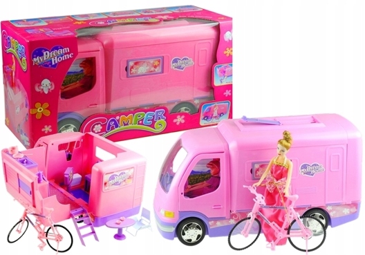 В верхней части кемпера можно разместить велосипед, чтобы у куклы внутри было больше места для мебели. Игра с ними будет развивать у ребенка мануальные навыки, а также воображение, творческие способности и логическое мышление. Выберите милый девчачий набор для своей куклы, и веселье никогда не будет прежним!