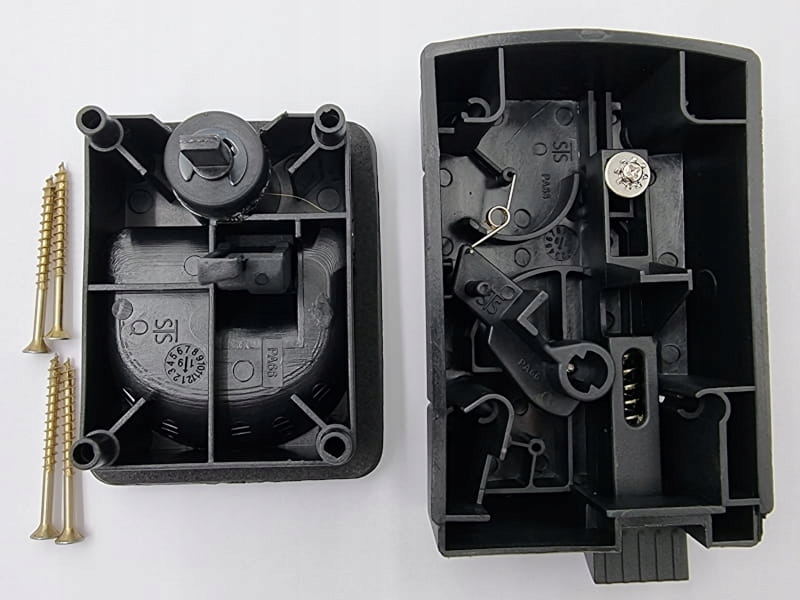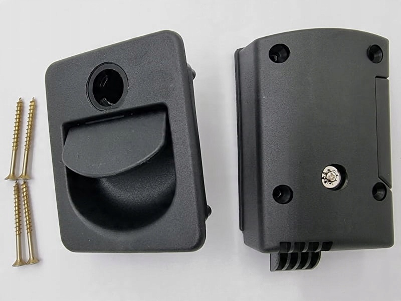 Замок двери модели фургона или кемпера Safe Tec Kubus. Черный замок с прорезью под цилиндр системы СТС (цилиндр и ключи в комплект не входят, их можно приобрести в нашем предложении, арт. 215/241).