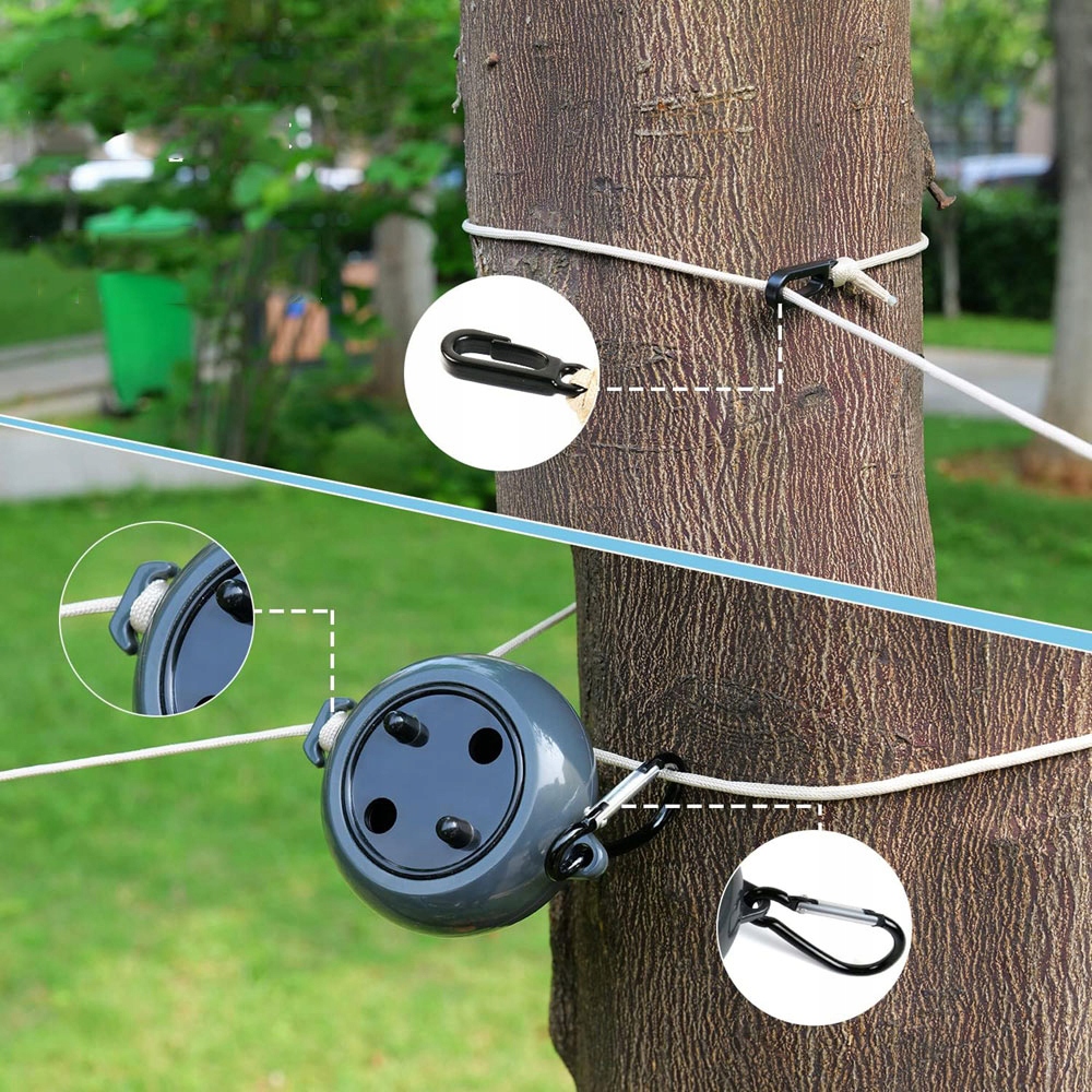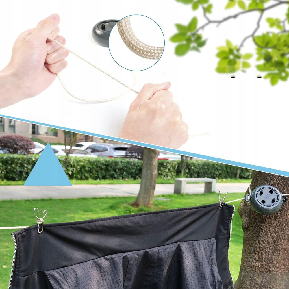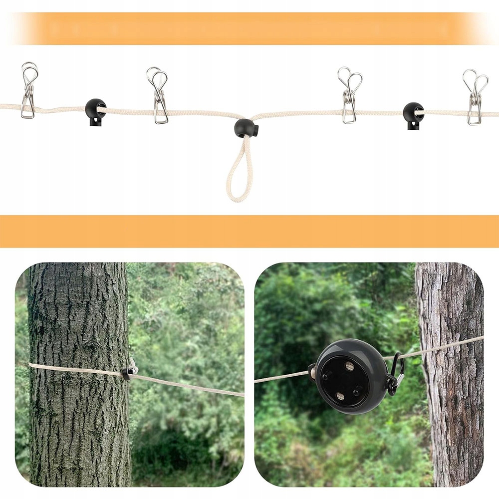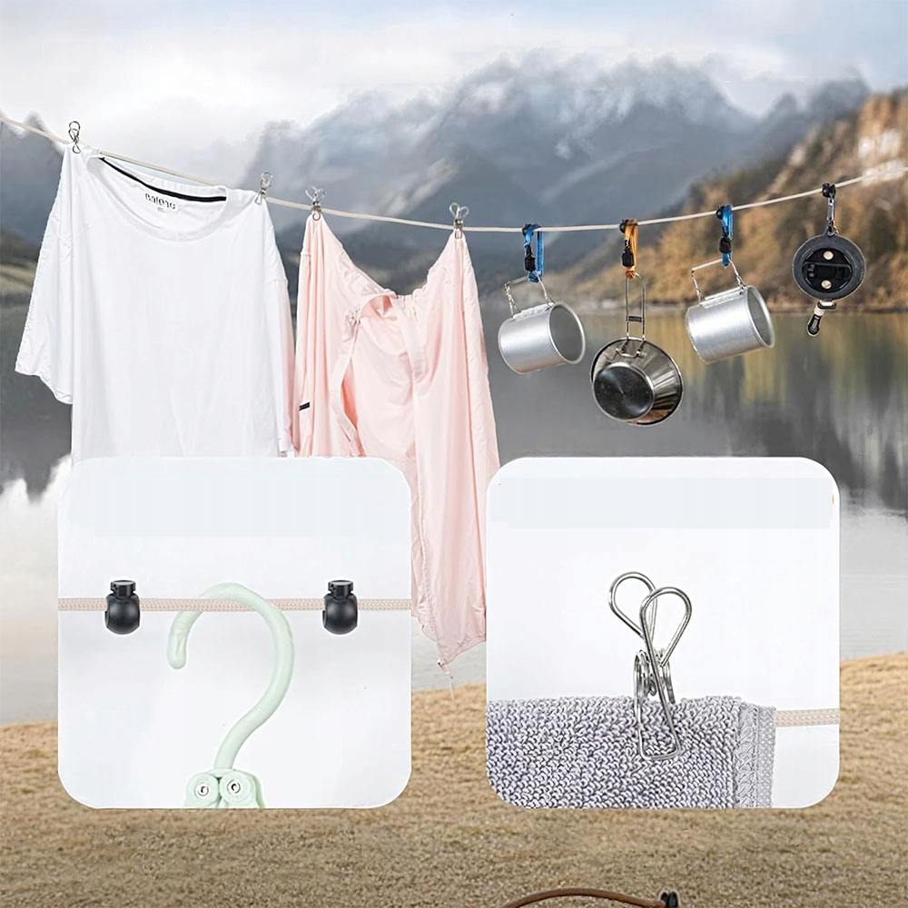 🧡 Регулируемая длина - портативная веревка для нижнего белья может использоваться почти везде. Это практично и эффективно. Благодаря максимальной длине 10 метров, он подходит для кемпинга, походов и занятий на свежем воздухе.