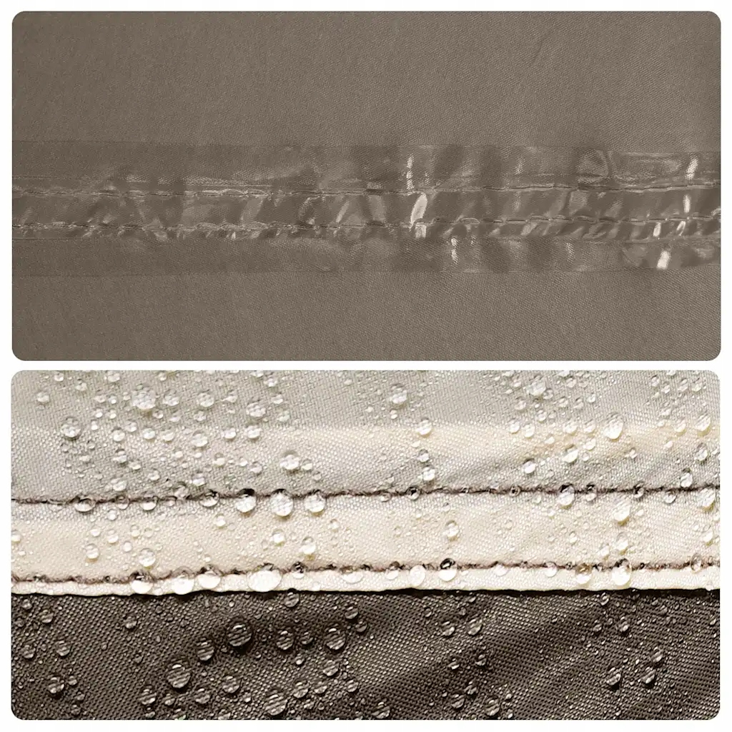 - Прочный материал из тафты: этот брезент, изготовленный из тафты с полиуретановым покрытием, является водонепроницаемым и ветронепроницаемым. Проклеенные швы эффективно предотвращают проникновение дождевой воды, сохраняя сухую и комфортную среду.
