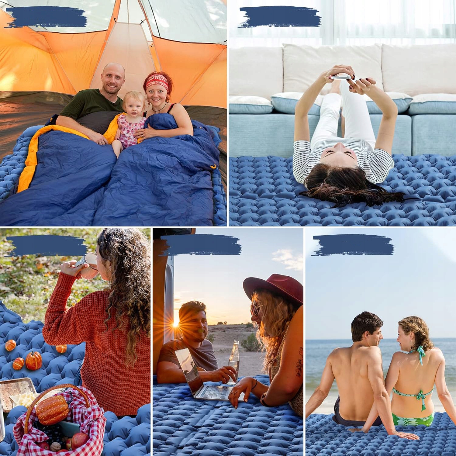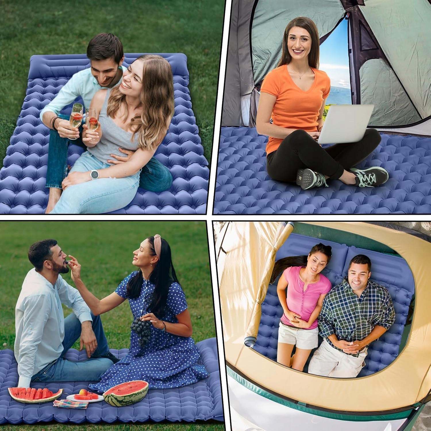 💙 2-личный спальный коврик: 200 x 120 x 10 см. Увеличенный и смелый двойной надувный спальный коврик. Очень большой размер, внешний спальный коврик идеально подходит для 2 человек во время кемпинга.