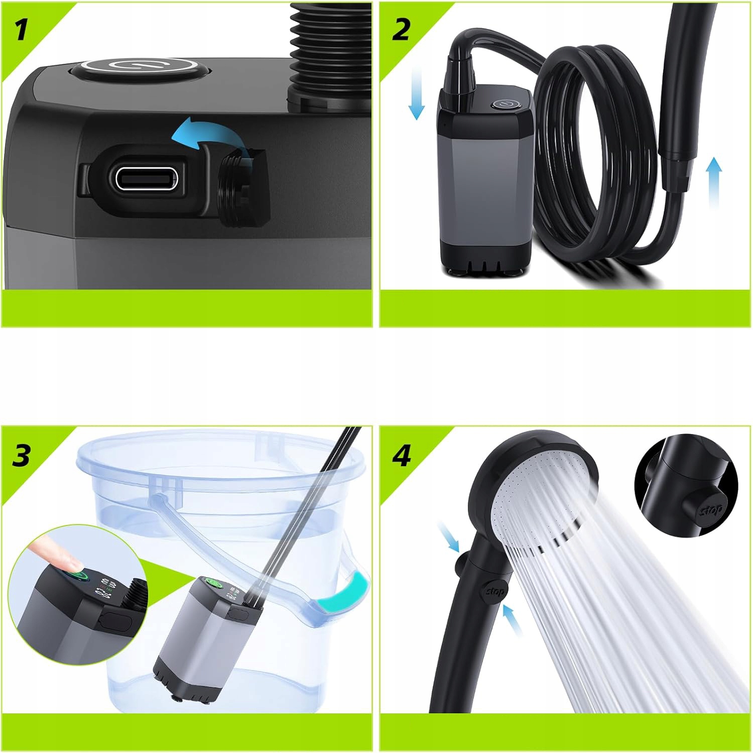 - Оснащен прочным двигателем, который работает тихо, наш портативный душ позволяет вам спокойно использовать душ в открытом воздухе.