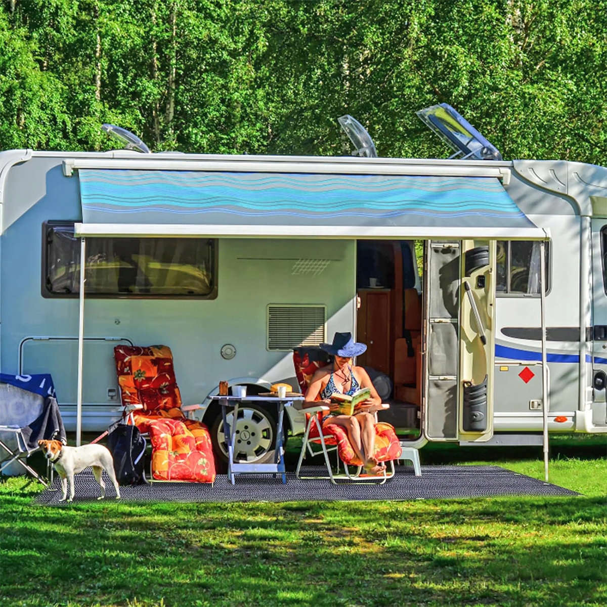 ☀ 【Удобная атмосфера】 Сетка, напоминающая сетка, предотвращает образование неприятных запахов под ковриком. Благодаря этому ковру, место, где можно сесть перед вашей палаткой, останется чистым. И босиком, и в обуви - ходьба очень удобная. Достаточное количество отверстий для крепления и дюбелей гарантирует, что лагерь безопасен и плоский на земле (12 швов | 13 дюбелей), подходящие для: навесы, беседки, палатки, пикники, путешествия, фестивалы, внешние зоны, туристы и т. Д. Для кемпинговых автомобилей и т. Д.