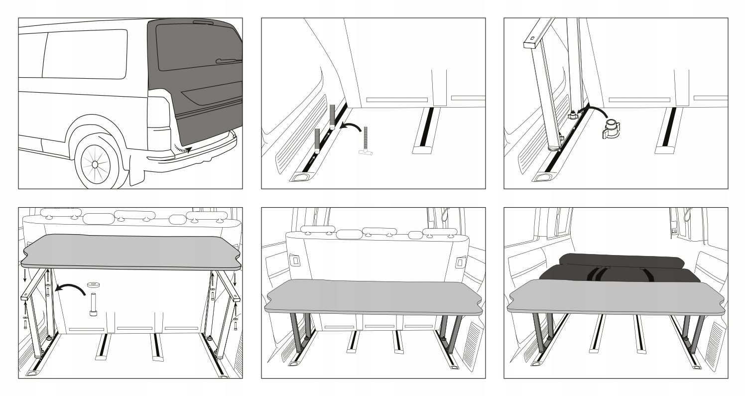 - Практическое шельф создает дополнительную спальную поверхность в вашем Volkswagen, обеспечивая больший комфорт во время перемещения. Идеально подходит для каждого любителя активного отдыха, он идеально подходит как для кемпинга, так и во время короткого отдыха на отдыхе. Это позволяет эффективно использовать доступное пространство, увеличивая общую мощность туловища. Это решение облегчает организацию пространства, обеспечивая лучшее расположение и упорядочение транспортируемого багажа. Сплошная конструкция выдерживает тяжелые нагрузки, гарантируя надежное и удобное использование. Транспортное средство