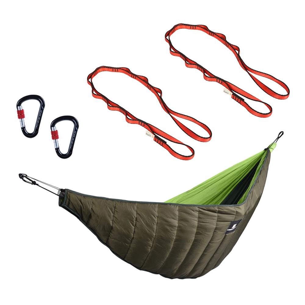В комплект входит 1 подкладка для гамака, 2 пружинных карабина и 2 ремня для гамака