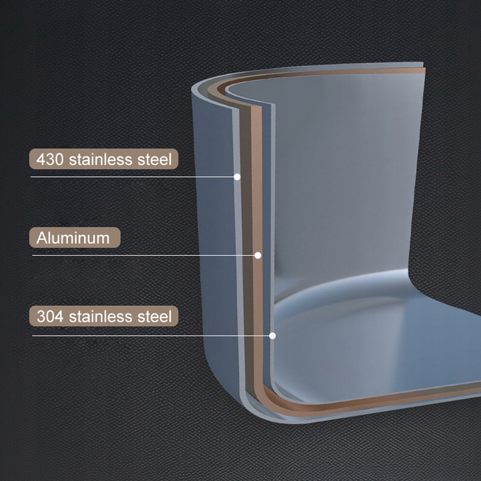 1. Внешний слой изготовлен из 430 материала из нержавеющей стали, который устойчив к высокой температуре, коррозии, окислению и незначительной теплопроводности.