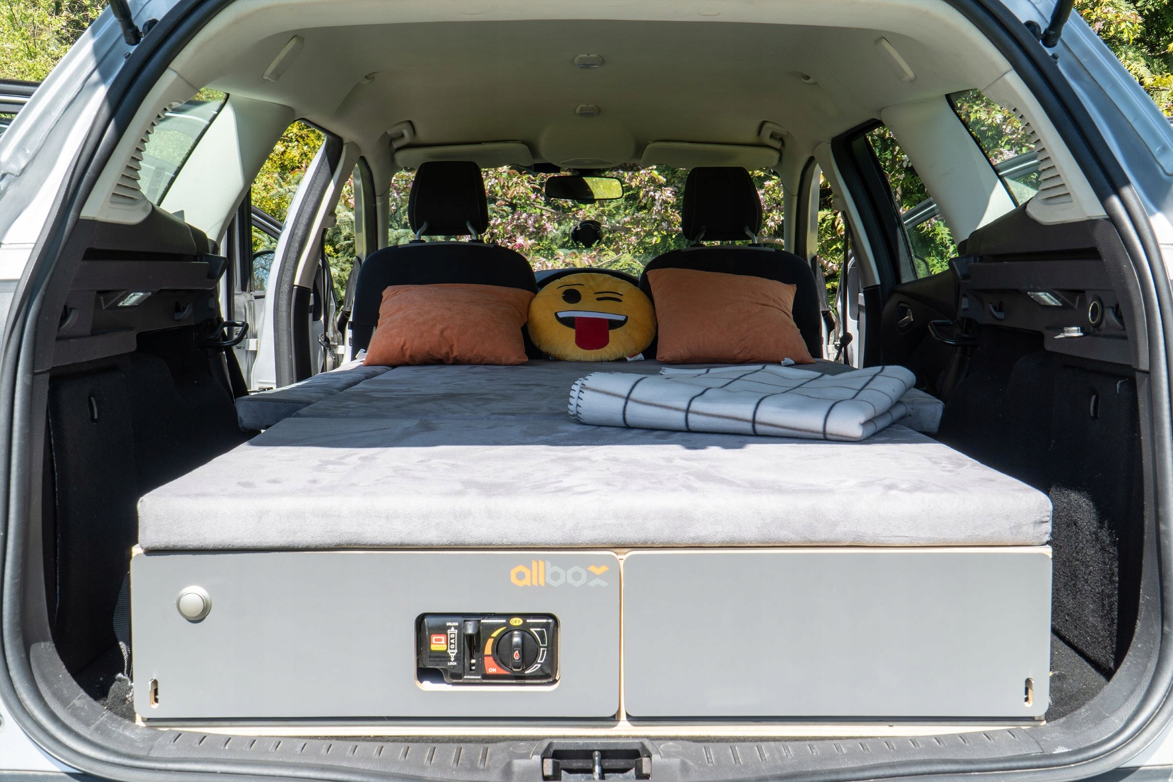Верхняя часть allbox b> - это складная кровать с удобным матрасом. Светлой фанерной рамки, дизайн рамы кровати позволяет использовать полную ширину интерьера автомобиля благодаря расширению. Поднятые кровавые панели облегчают доступ к багажу.