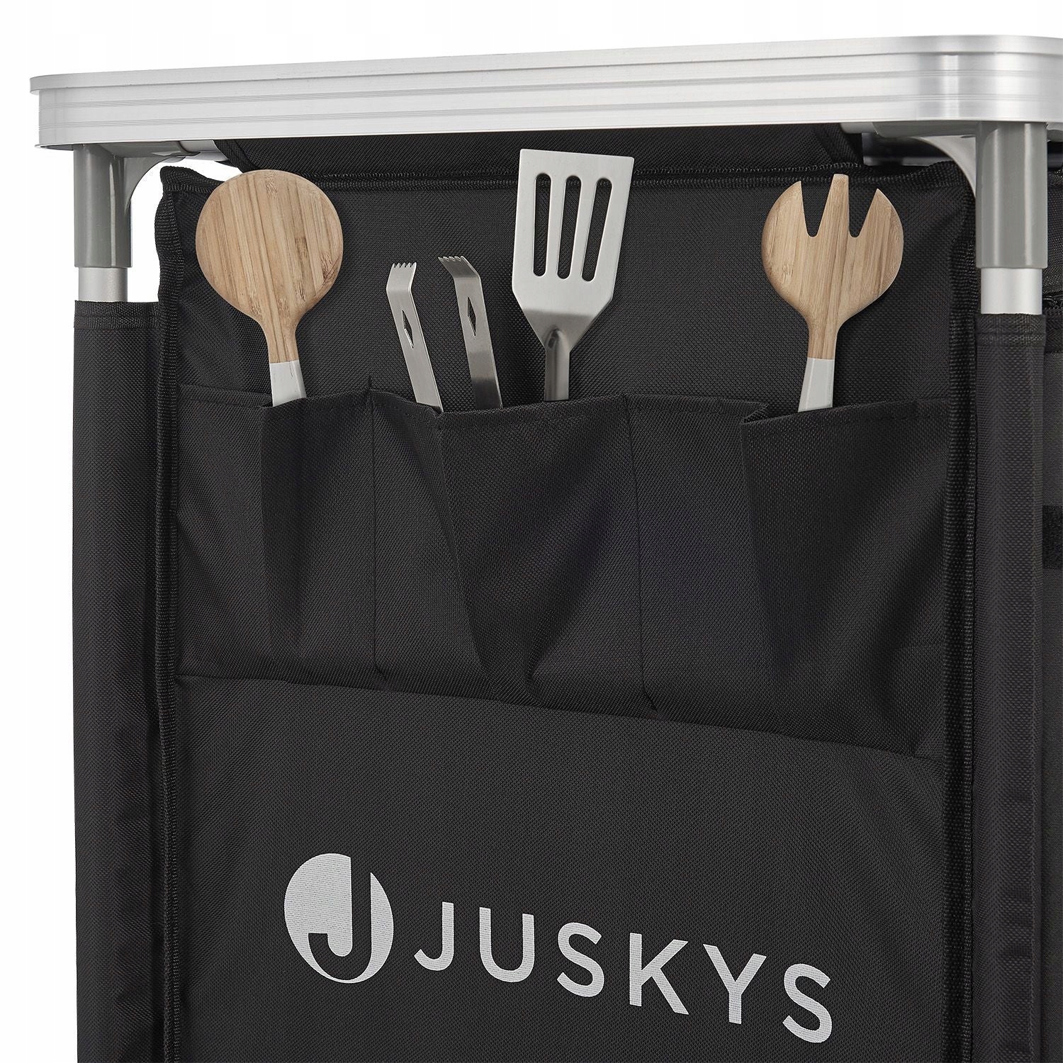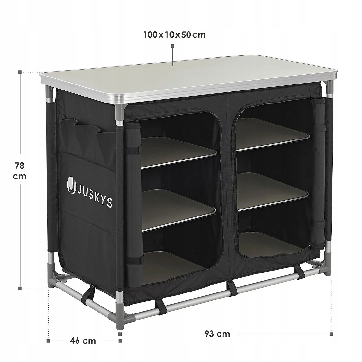 Компактная черная походная кухня немецкого бренда JUSKYS® – легкое и в то же время прочное решение для любителей активного отдыха. Оснащенный просторными полками и боковыми карманами, он предлагает достаточно места для хранения посуды, кастрюль, столовых приборов и других кухонных принадлежностей. Просторная и легко моющаяся рабочая поверхность обеспечивает комфортные условия для приготовления пищи на открытом воздухе. Кухня идеально подходит для кемпинга, кемпинга, пикников или походов. В комплект входит практичная сумка для транспортировки, которая облегчает хранение и транспортировку кухни.