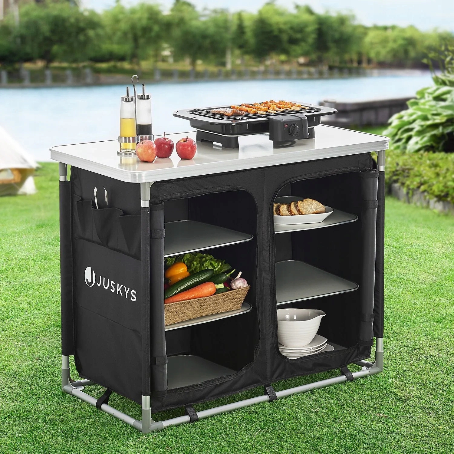 КЕМПИНГОВАЯ КУХНЯ ЧЕРНЫЙ СКЛАДНОЙ МОБИЛЬНЫЙ ШКАФ СО СТОЛЕШНИЦЕЙ