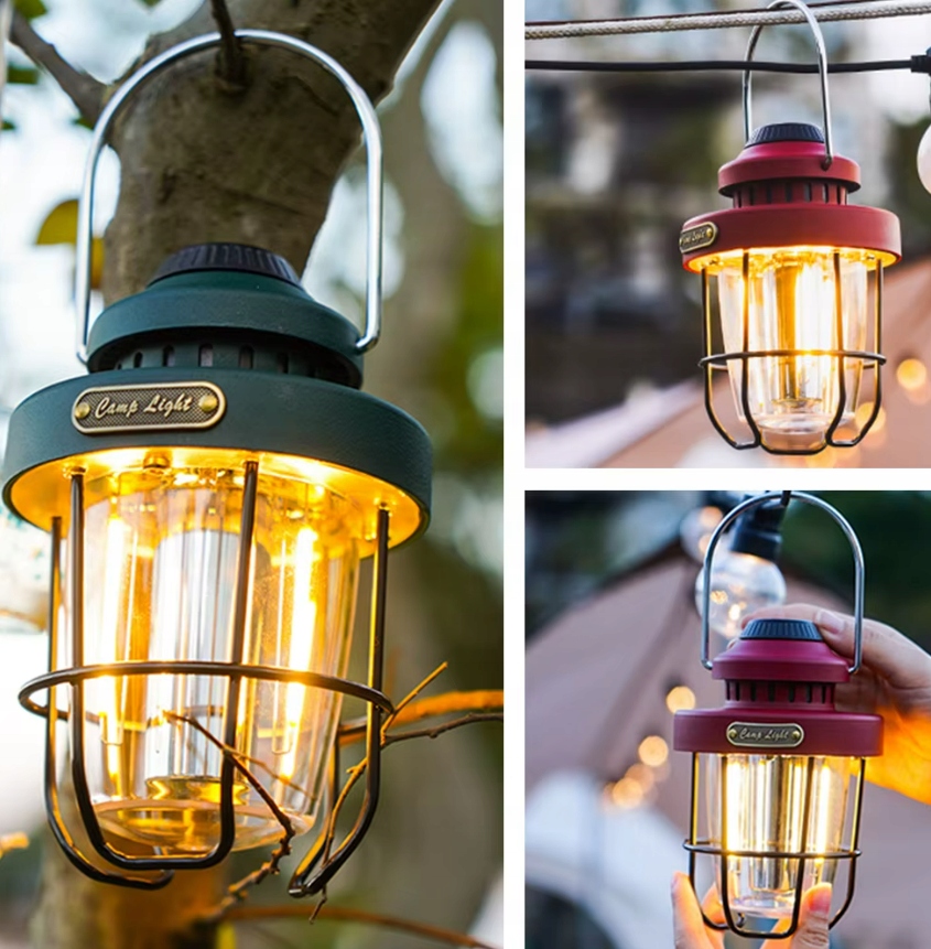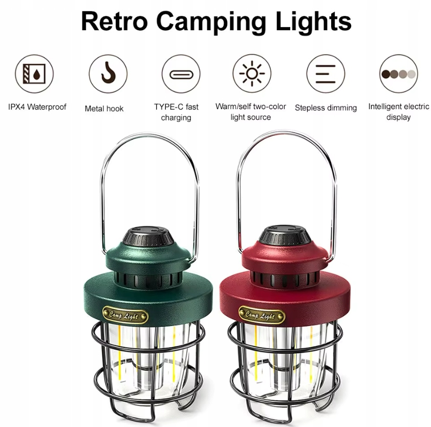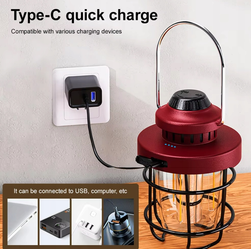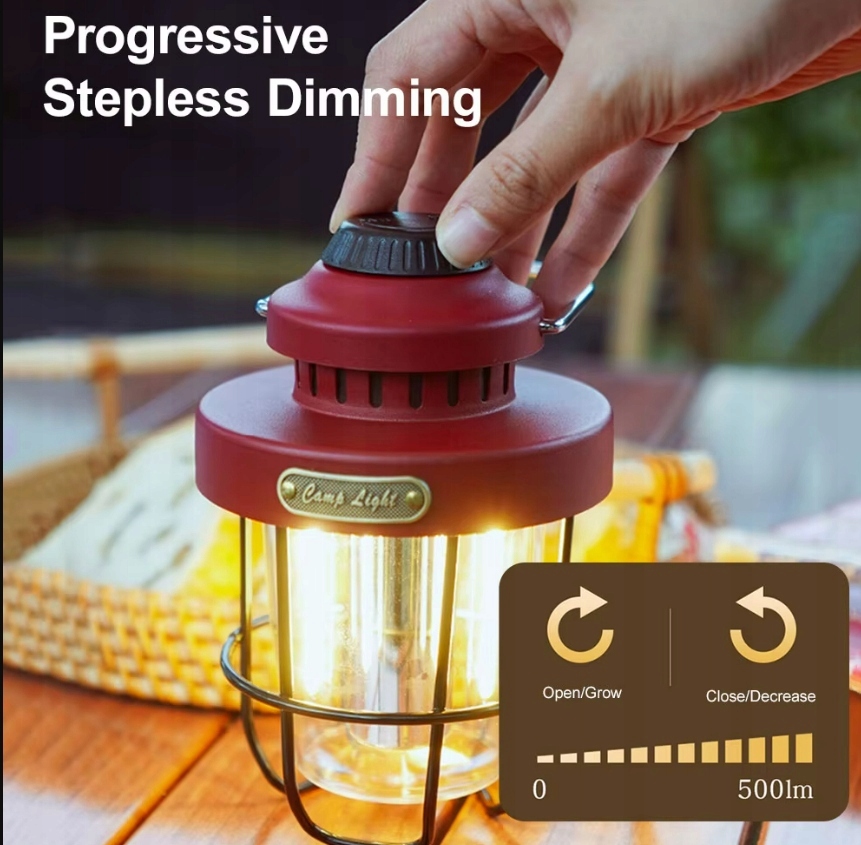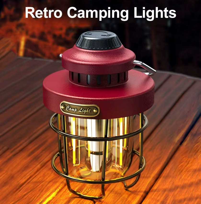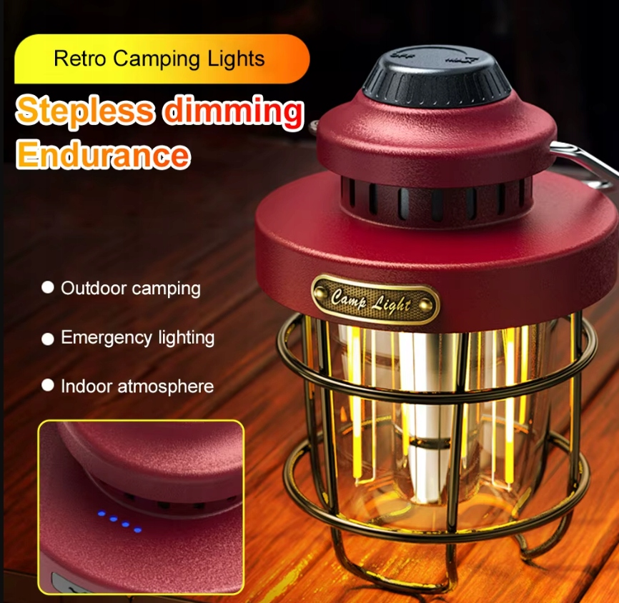 Кемпинговая лампа открылась ретро USB-C IPX4 светло-красная регулировка красного цвета