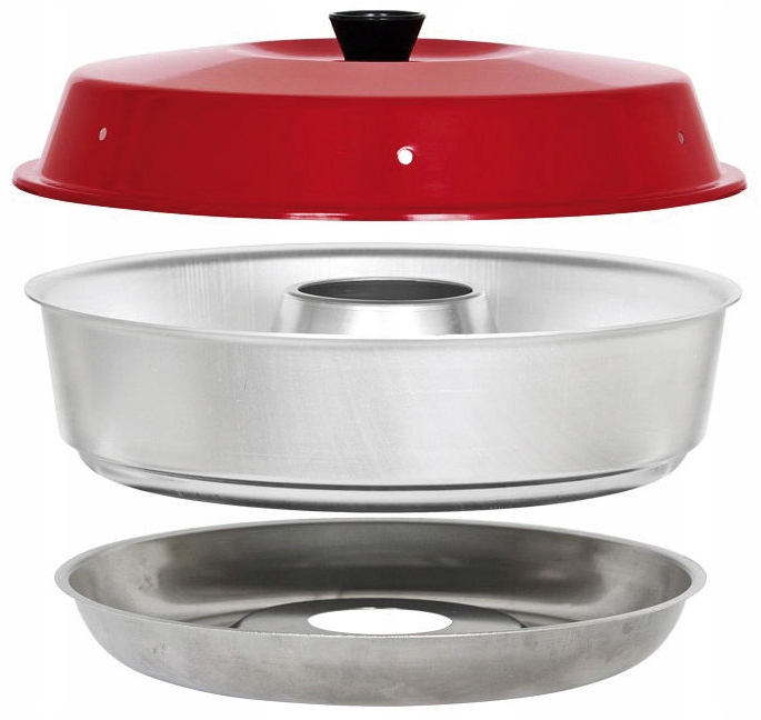 - Круглая алюминиевая форма с отверстием посередине примерно наполовину заполняется ингредиентами или тестом и обеспечивает равномерное распределение тепла.
