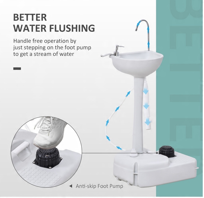 Вы ищете портативную ручную раковину? Мы рекомендуем портативную аутсуть ручную раковину, идеальную снаружи. Благодаря встроенной ручке и колесам, вы можете взять его везде с вами. Водяной резервуар этой мобильной раковины будет иметь 17 литров. Он оснащен встроенным дозатором мыла, держателем полотенец и гибким сливным шлангом для удаления сточных вод. В идеале подходит для открытых мероприятий, строительства, кемпингов, лодок и многого другого