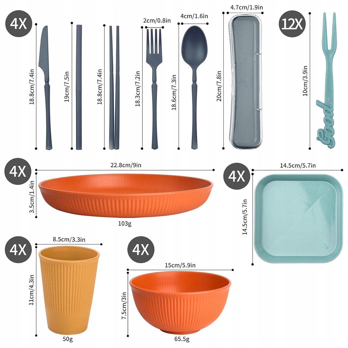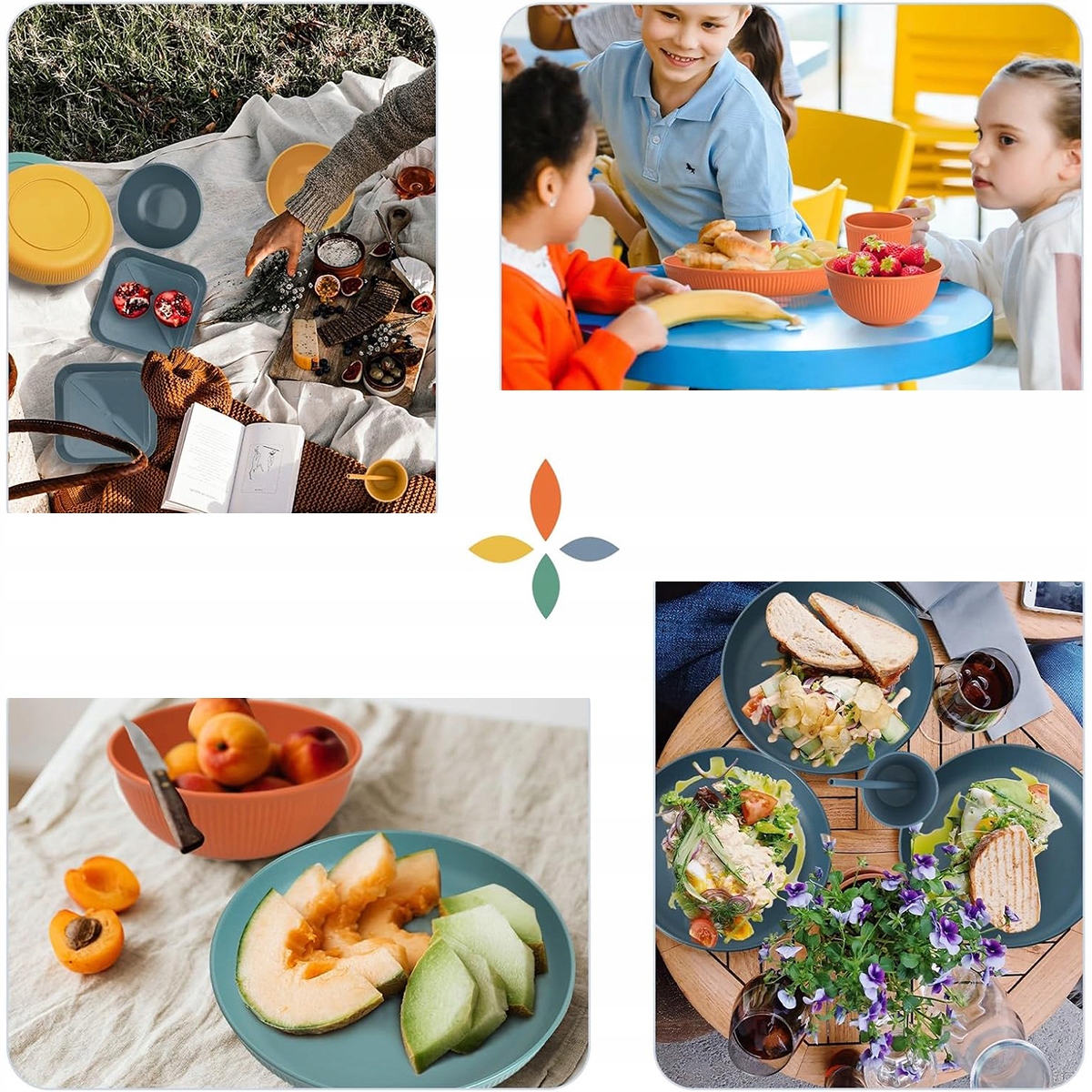 48-й цельный ужин, набор многоразового пластикового кемпинга для 4 человек, пикник, легкий, красочный, гриль, пластиковая (солома из пшеницы) для порции, мисок и столовых приборов h1>