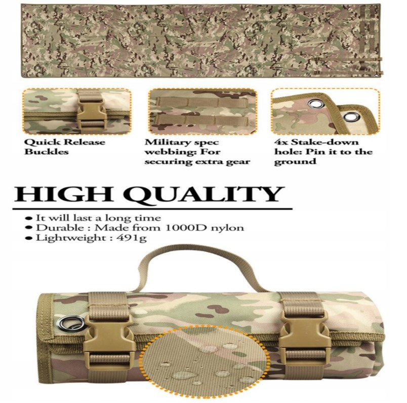 Двусторонняя, водонепроницаемая и влагозащищенная подставка для стрельбы из нейлона 1000D с полиуретановым покрытием сохраняет сухость и чистоту на влажных или пыльных поверхностях.