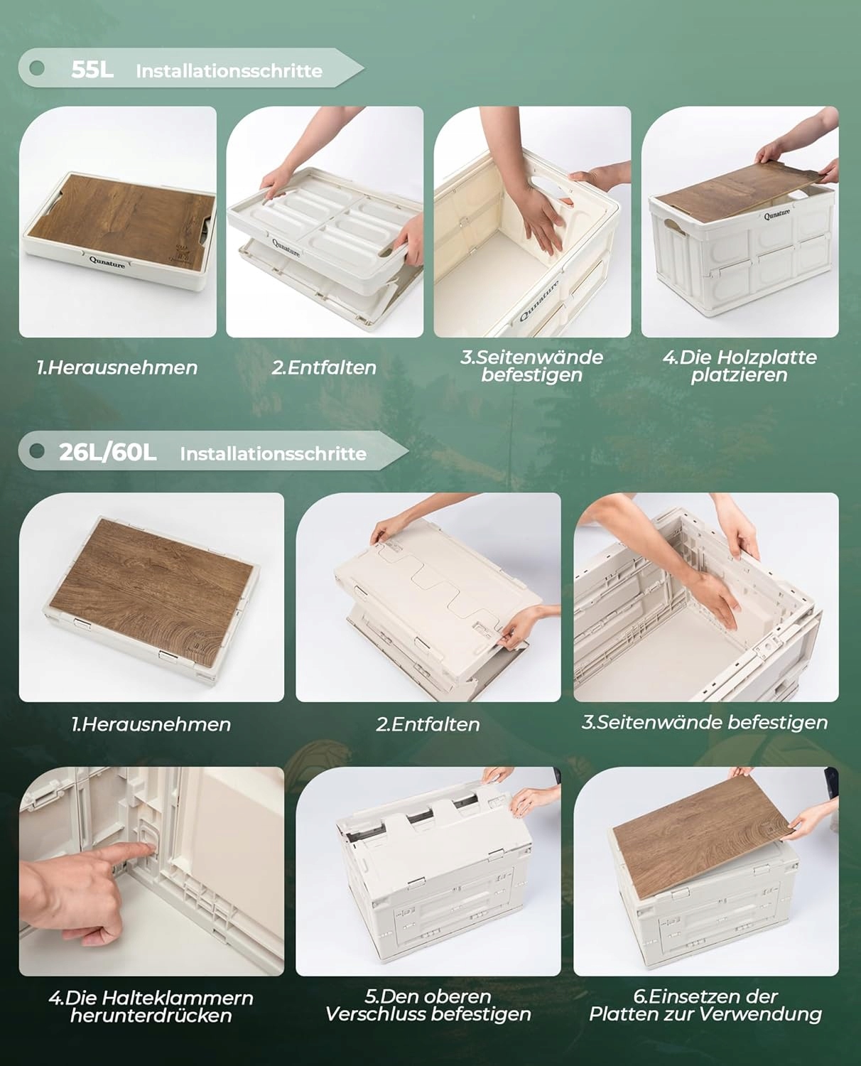 【Универсальное использование】Походную коробку можно сложить для экономии места, ее легко транспортировать и использовать во многих местах. Он подходит не только для пикников на природе, но и для хранения одежды, детских игрушек, мелких вещей и т. д. дома или в качестве коробки для покупок и органайзера при выходе из дома и в багажнике автомобиля.