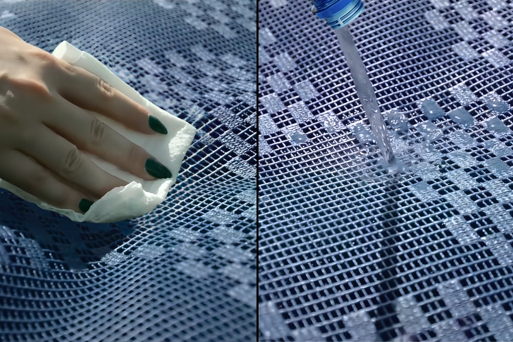 ЛАТЕКСНОЕ ПОКРЫТИЕ означает, что коврик не впитывает жидкость и запахи. В сочетании с сетчатой структурой это гарантирует исключительную простоту поддержания порядка.