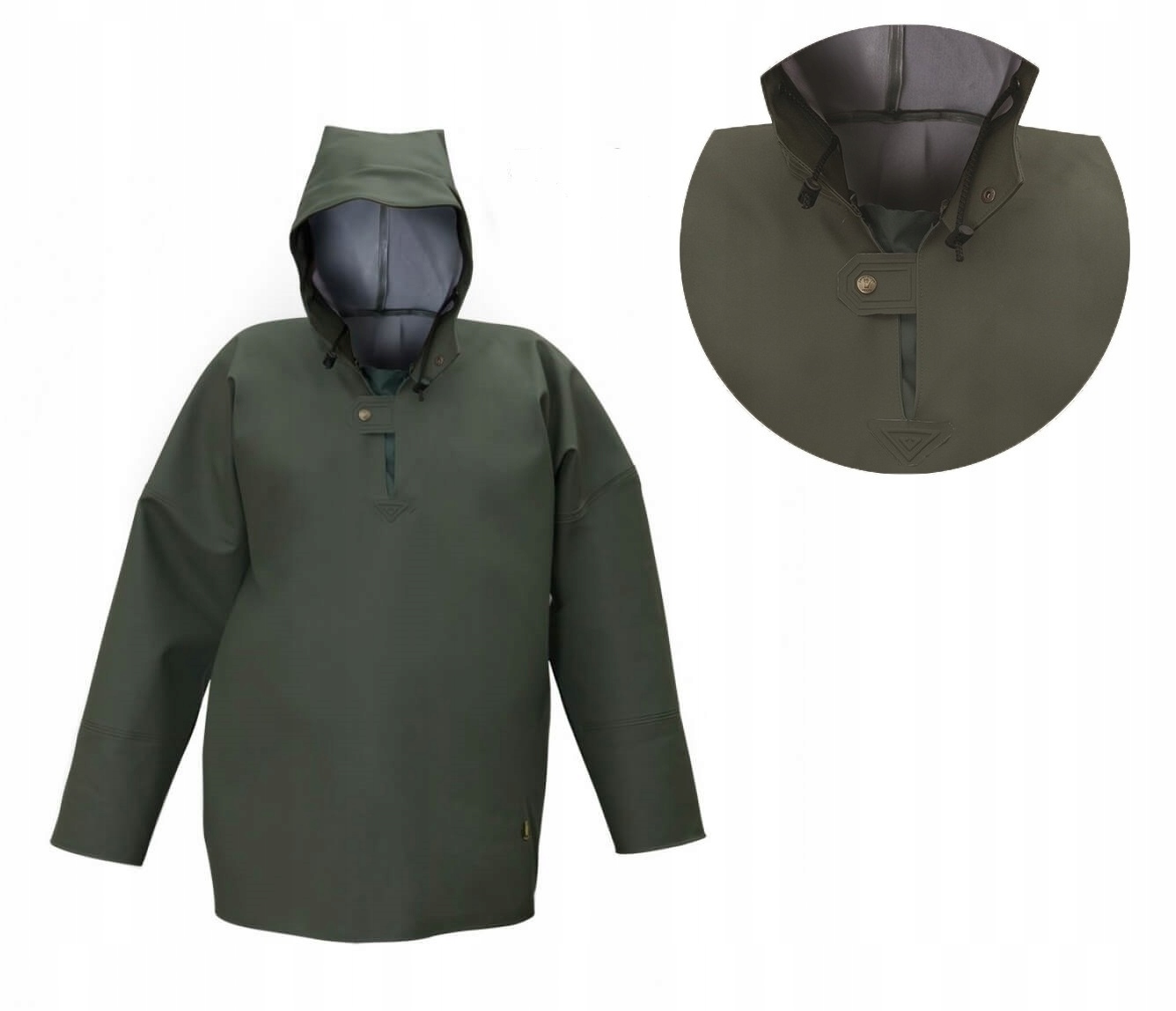 Куртка с капюшоном и вестибюль в рукавах, надеть за голову, закрепленную двумя прессами. Модель изготовлена из защищенной от воды, долговечной ткани Plavitex, предназначенной для использования в рыболовных работах в трудных условиях в море. Он обеспечивает эффективную защиту от ветра, дождя и соленой воды. Техника двусторонней сварки увеличивает прочность швов. Продукт соответствует стандартам европейских стандартов: EN ISO 13688 и EN 343.