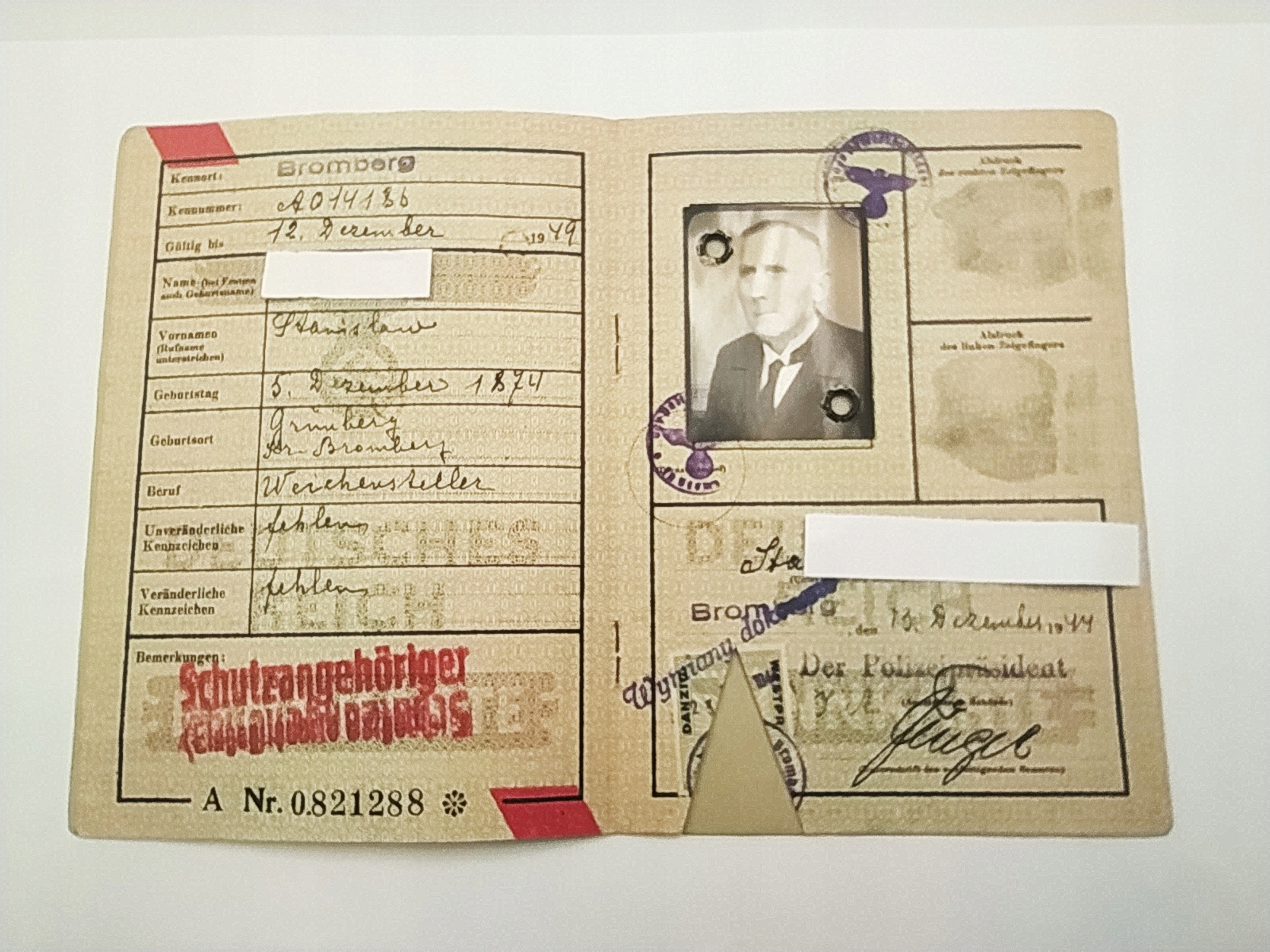 Kennkarte Deutsches Reich Bromberg (Bydgoszcz) 1944 г. Полицейский участок VI MO