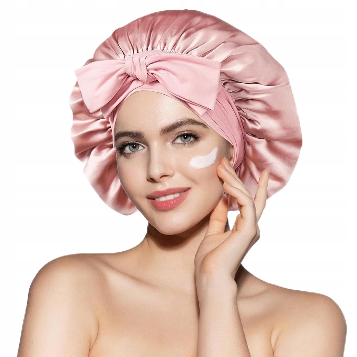 Шапочка - легкая, атласная ночная шапочка, розовая.