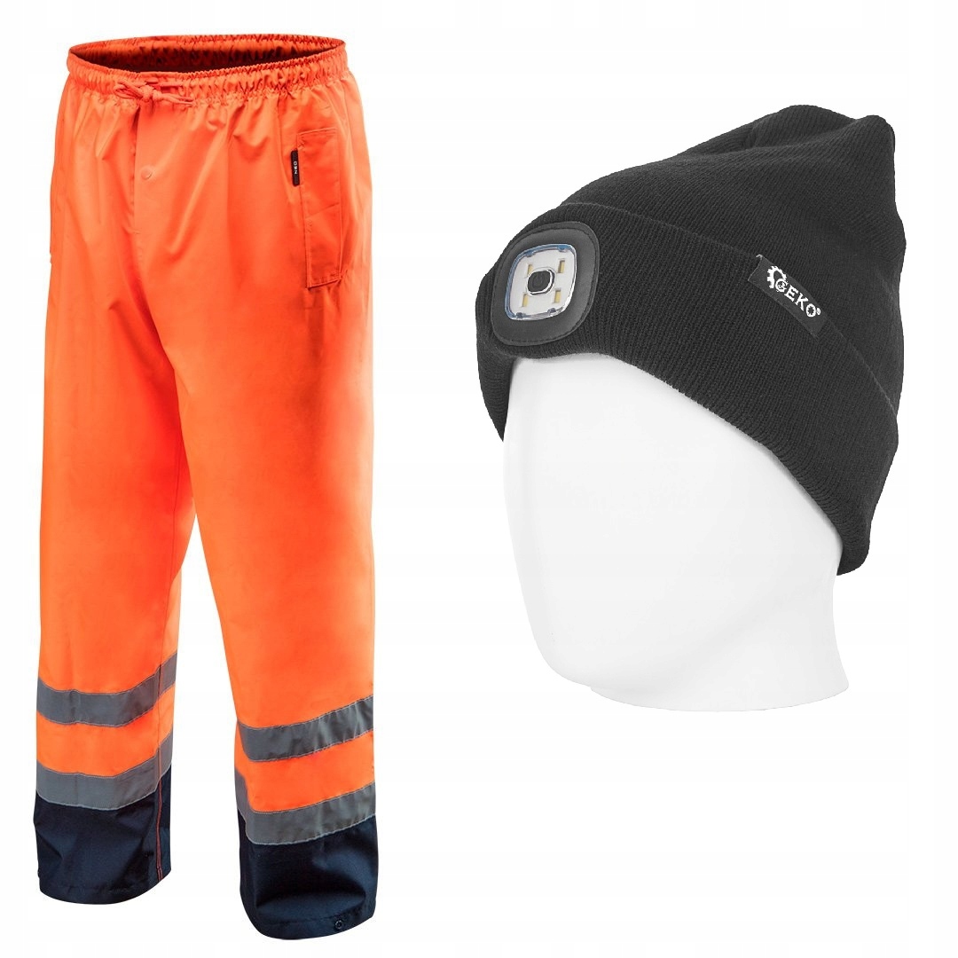 Кепка акумуляторна, світлодіодний ліхтарик + робочі штани підвищеної видимості, помаранчеві M