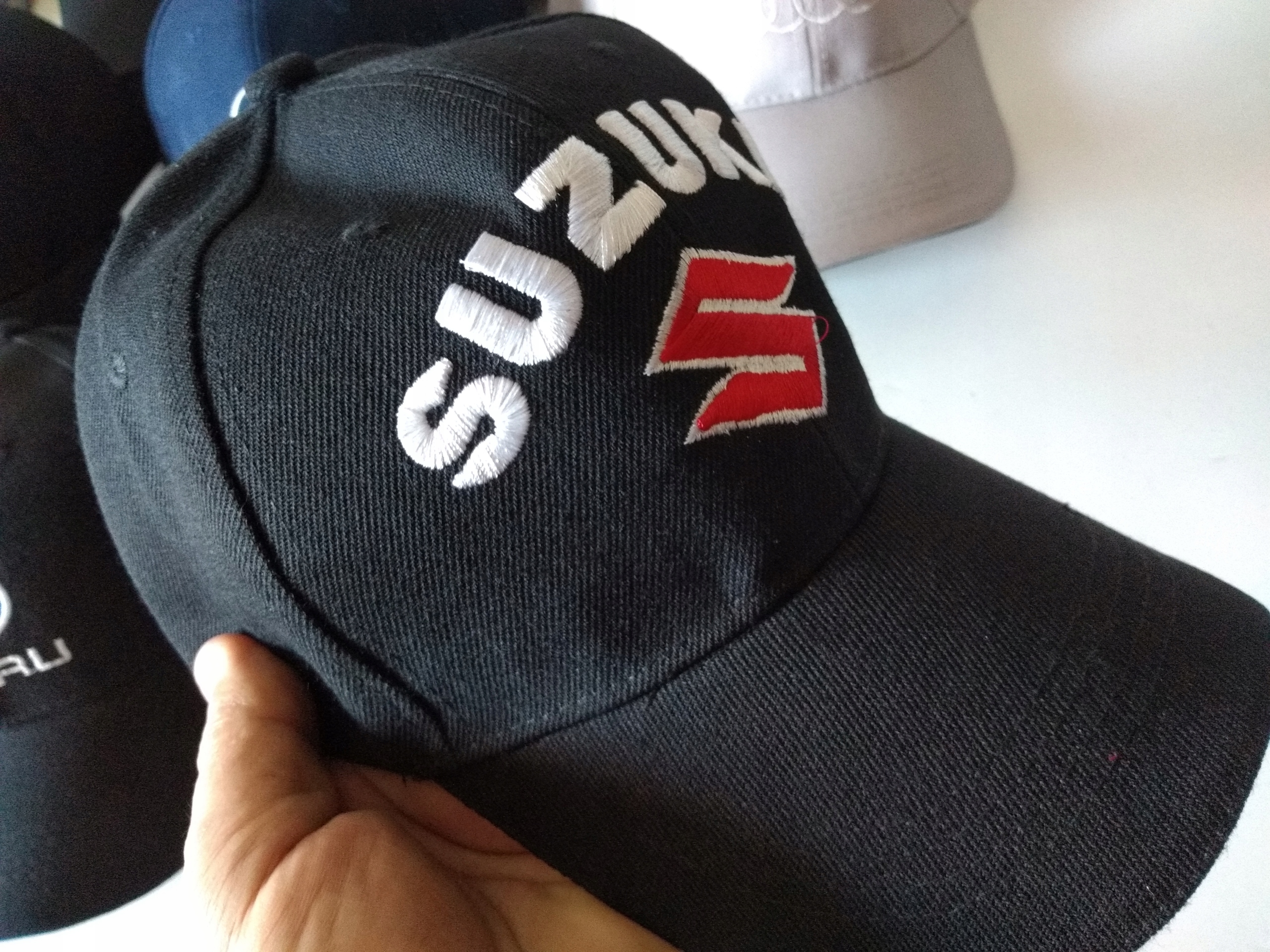 - Вышитый логотип и надпись Suzuki на передней части кепки, а также как сбоку, так и сзади, вышиты разноцветными нитками, как на фото.
