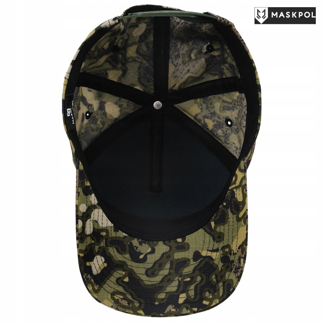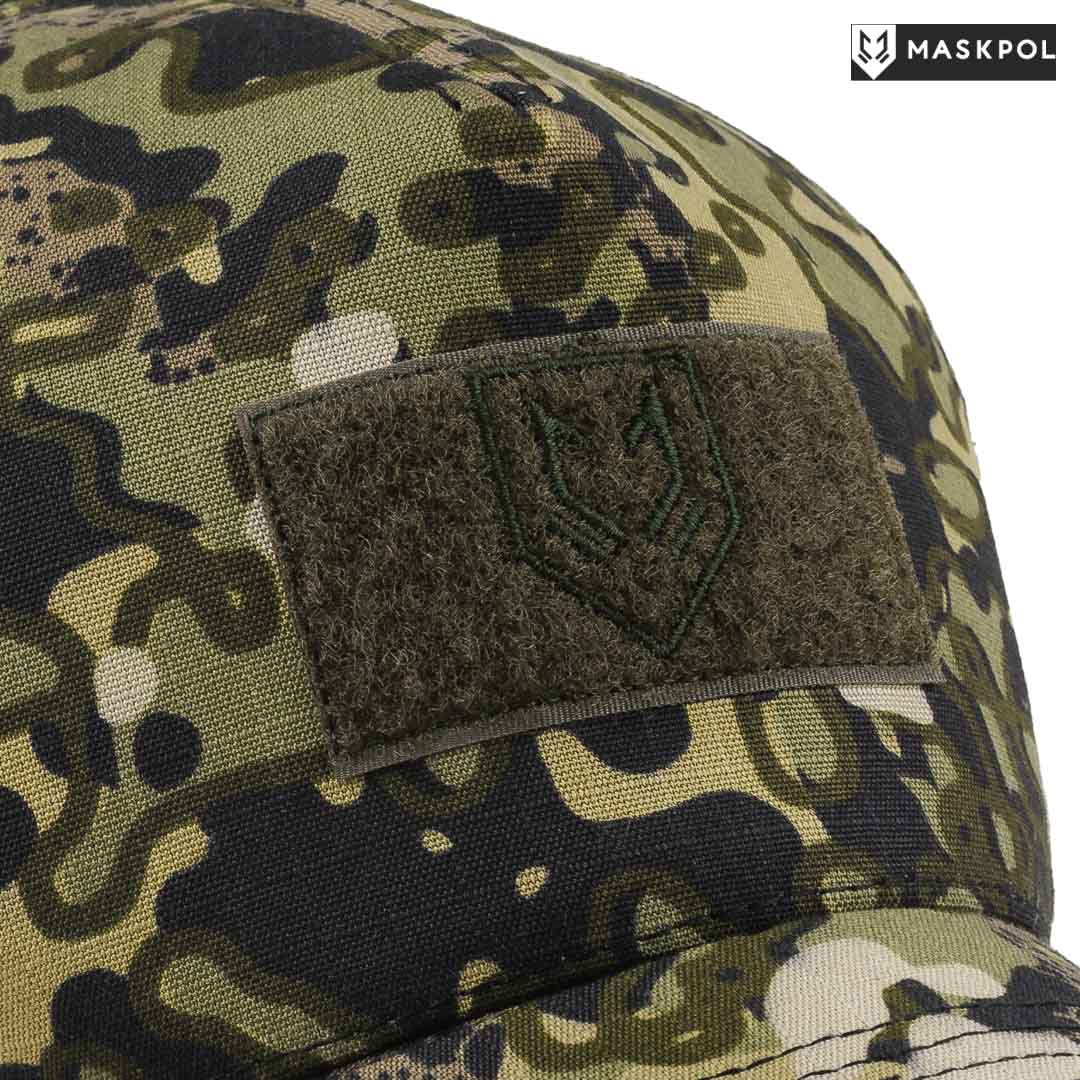 Классическая кепка с козырьком и жестким лбом. Шапка полностью изготовлена из ткани, полностью защищает от палящего солнца и хорошо маскирует. Утолщенный лоб обеспечивает хорошую посадку шляпы. Жесткий пластиковый козырек защищает лицо и глаза от солнца и дождя. Козырек имеет 8 стежков, обеспечивающих хорошее прилегание материала. На лбу мягкая вставка на липучке с нашивками и вышитым логотипом Maskpol. Удобная регулировка окружности с помощью классического пластикового регулятора камуфляжного цвета. На макушке имеется металлическая кнопка, обтянутая материалом. Мягкая и впитывающая повязка на подкладке под нижним краем шапки. Плоские швы и усиление кантов.