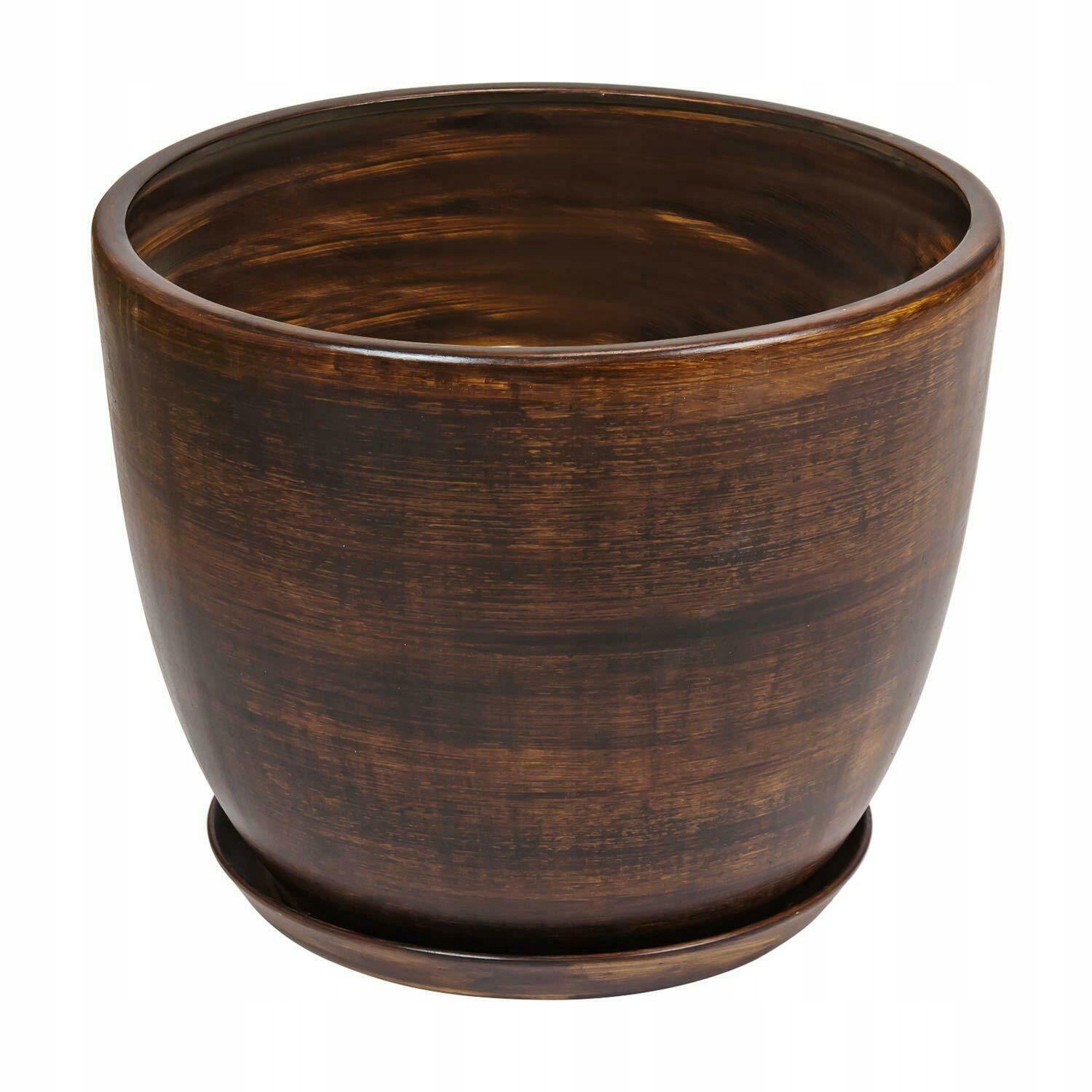 Керамический горшок с бочкой 2 темное дерево 16x13 см h1>