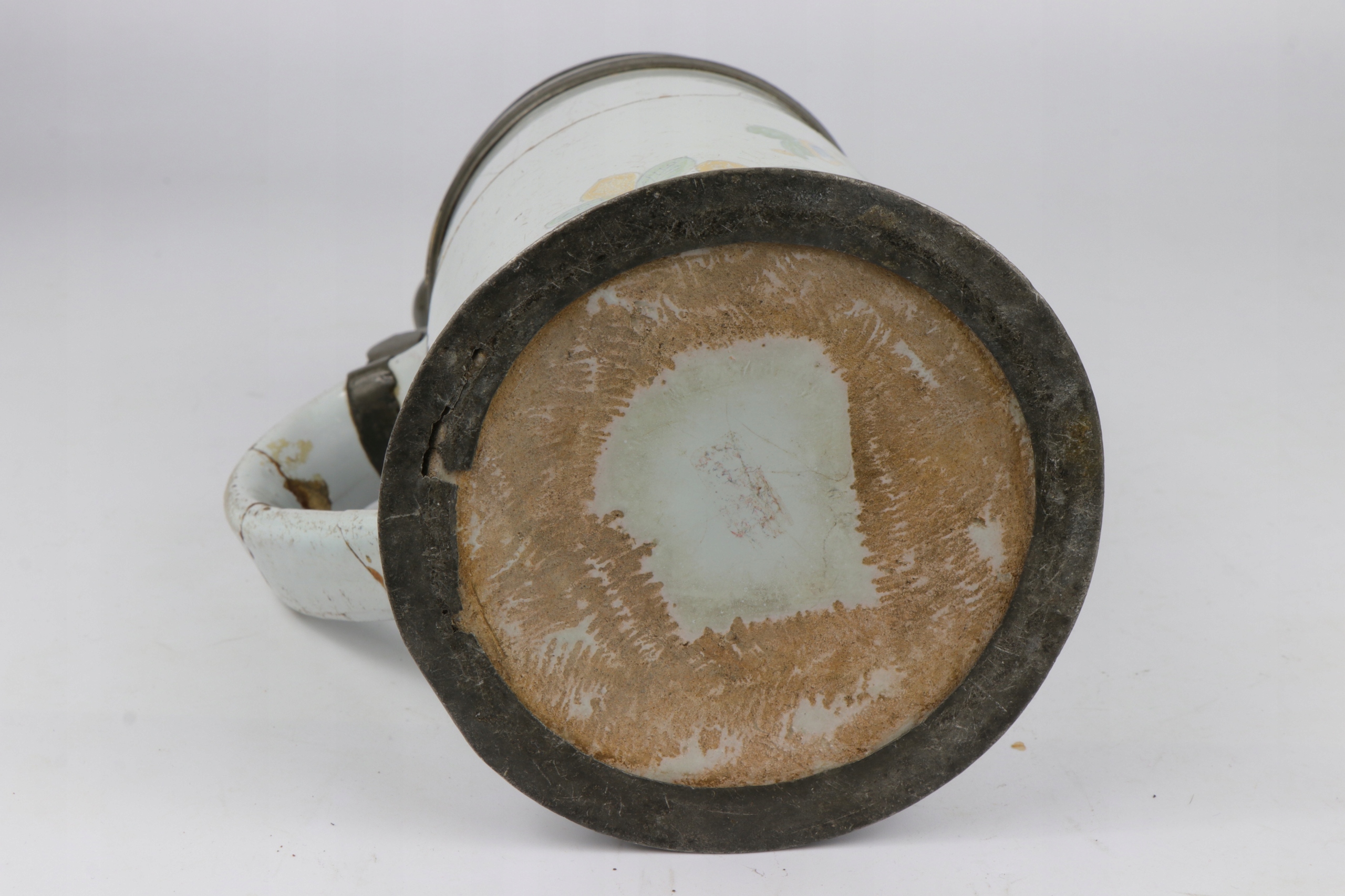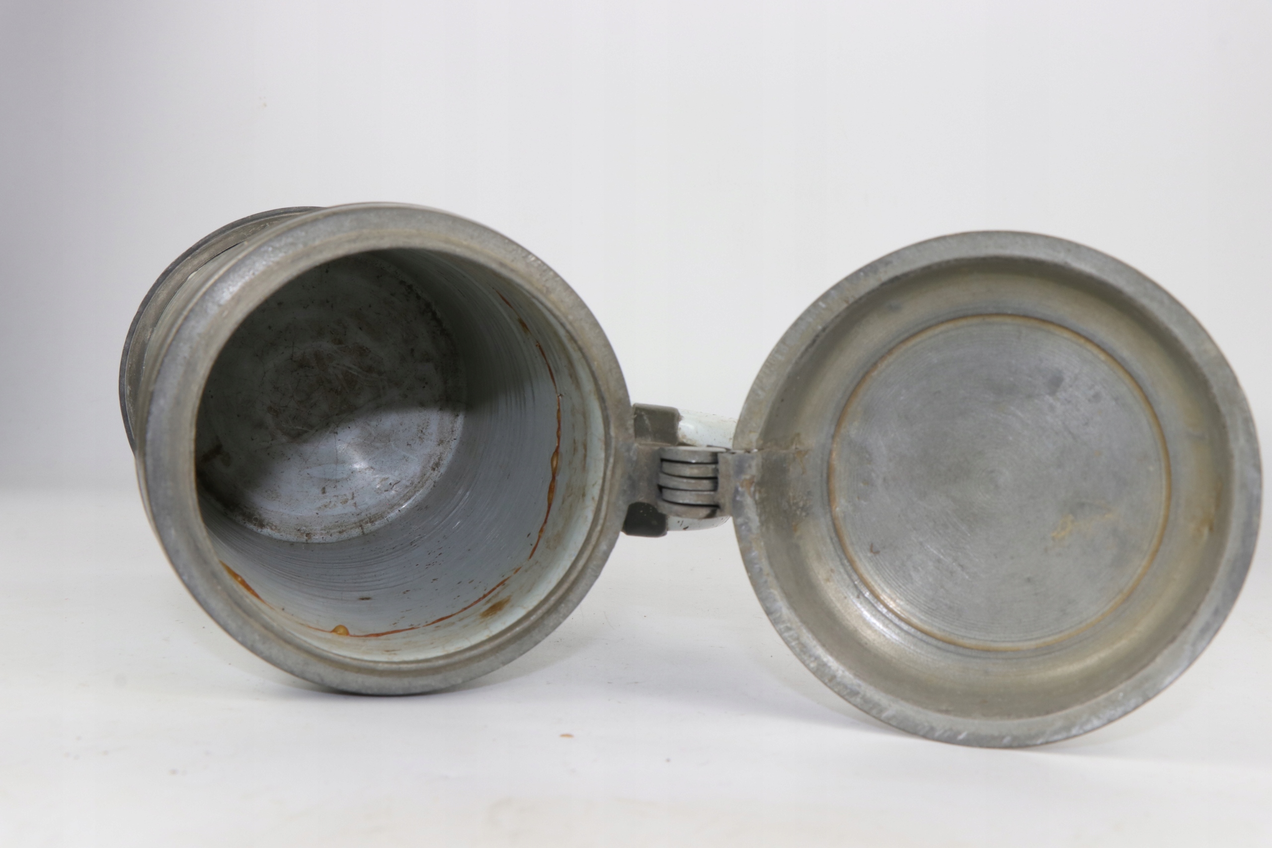 Как видно на фотографиях, кружка проклеена. Нижняя жестяная крышка подвижная.