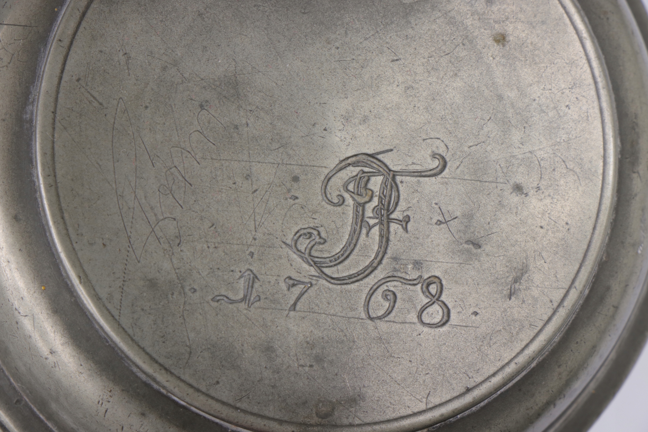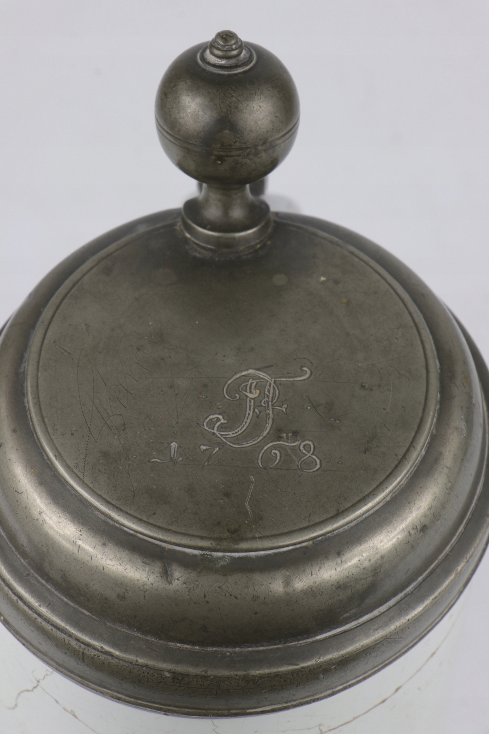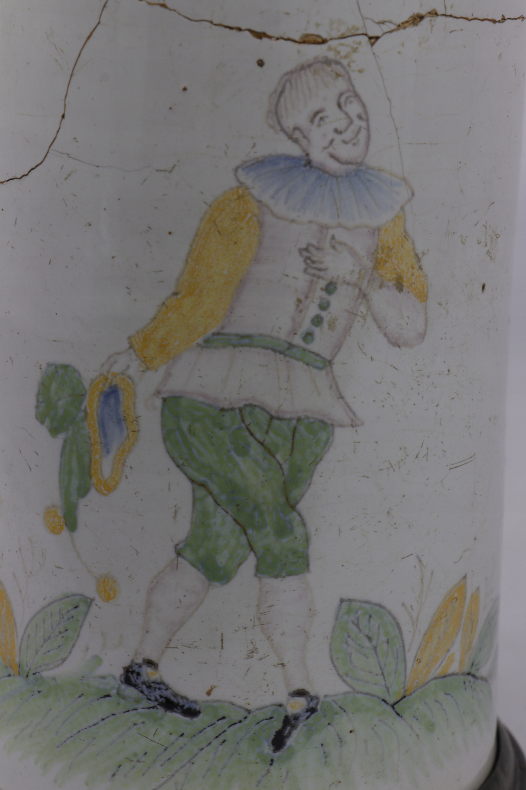 Очень интересная и редкая музейная керамическая кружка с жестяной крышкой. На крышке инициалы и дата 1768. Кружка украшена нарисованной вручную фигуркой Пьеро.