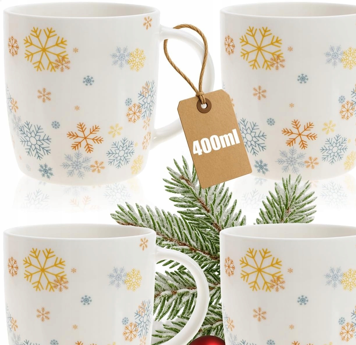 КЕРАМІЧНА ЧАШКА РІЗДВЯНА СНІЖИНКА НАБІР 4 ШТУК 400 МЛ