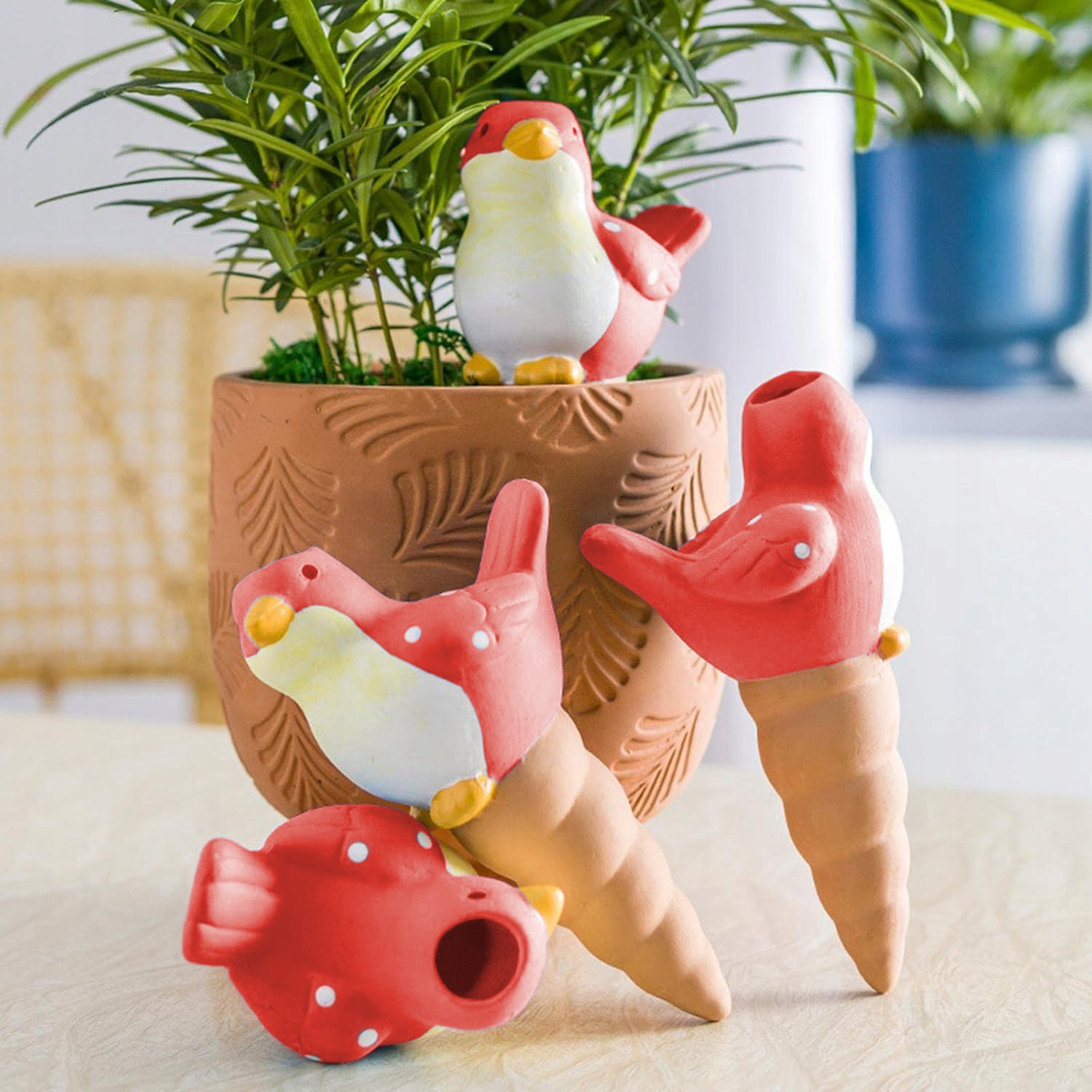 Керамический дозатор в форме птицы - это не только практичный инструмент, но и уникальное украшение, которое оживит любой цветочный горшок. Красочные детали и изящная форма придают птице очарование как комнатным, так и садовым растениям. Это идеальный выбор для любителей природы и стильных украшений.