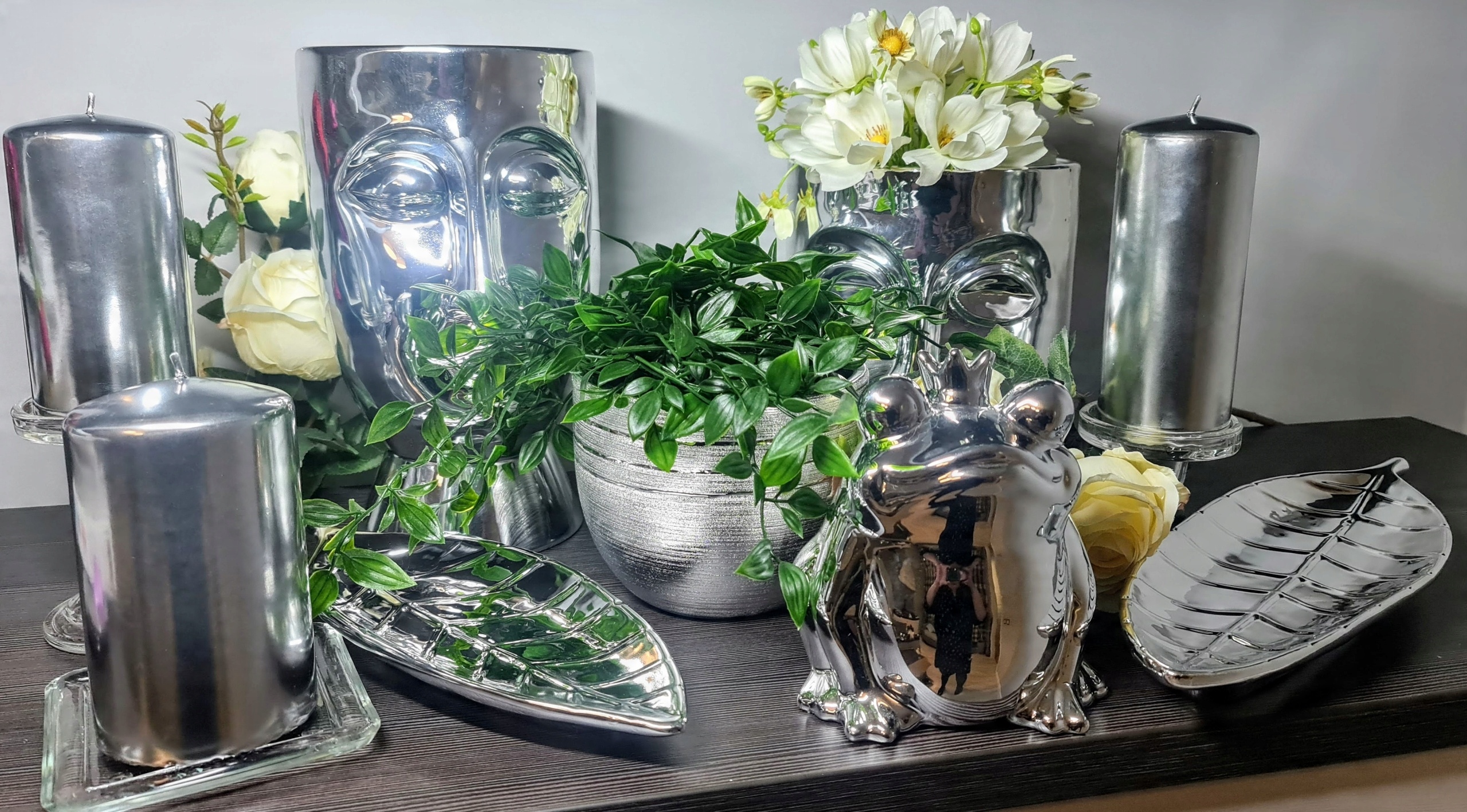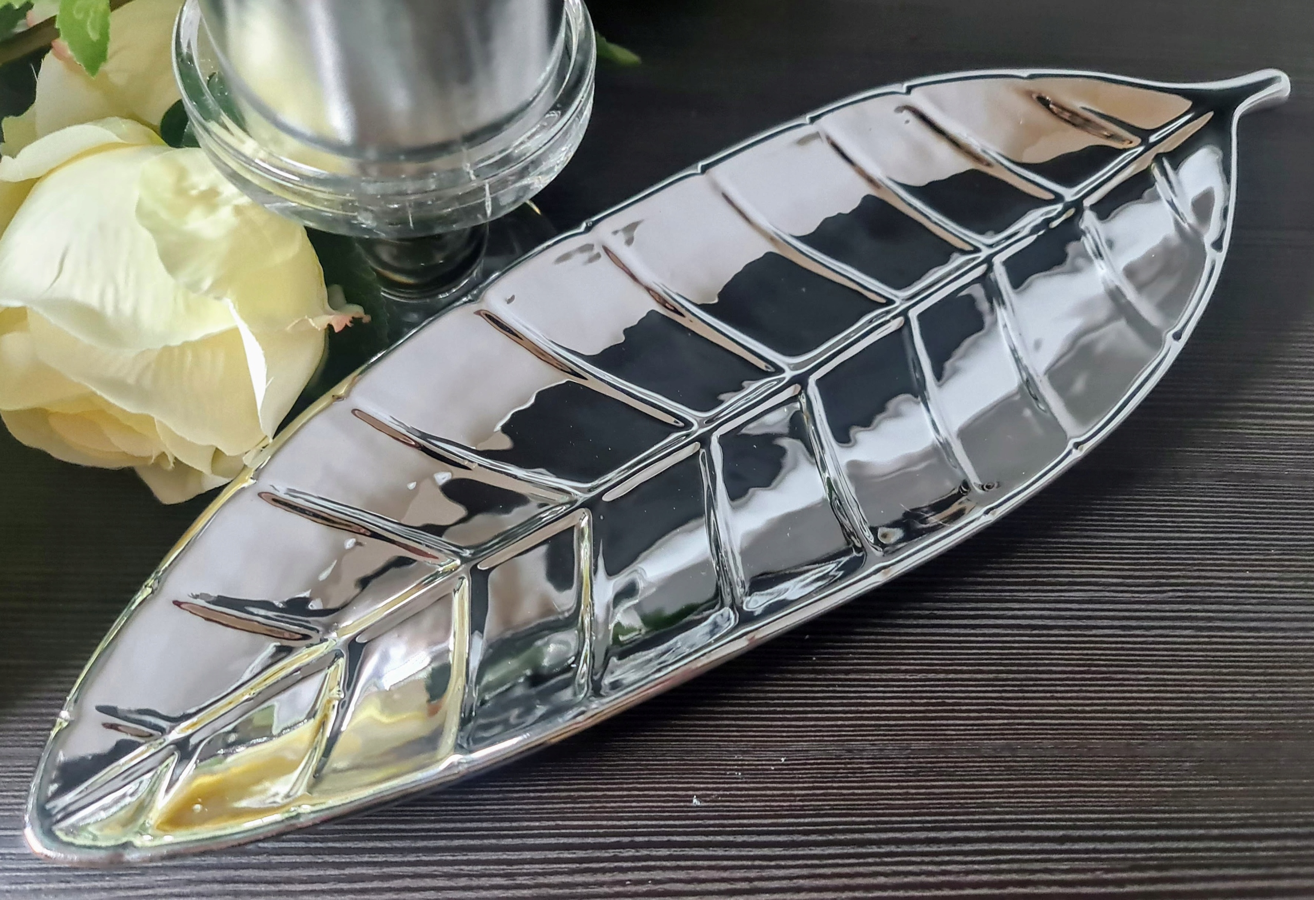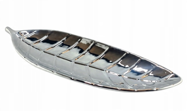 КЕРАМІЧНА ДЕКОРАТИВНА ТАРИЛЬКА-ЛИСТ СРІБЛО 35X12X3,5CM